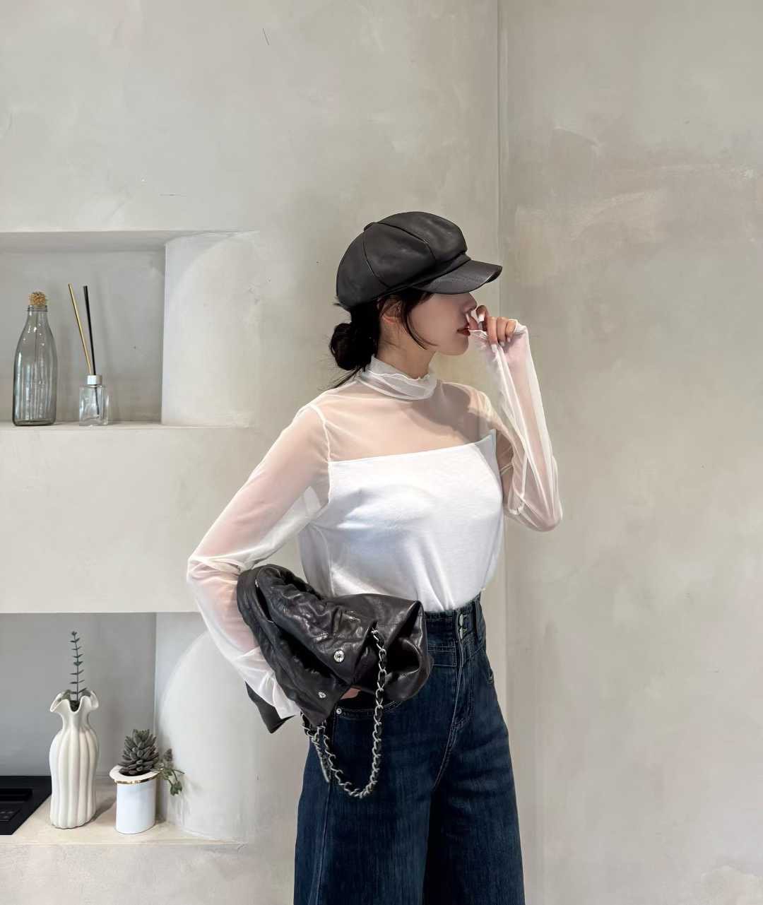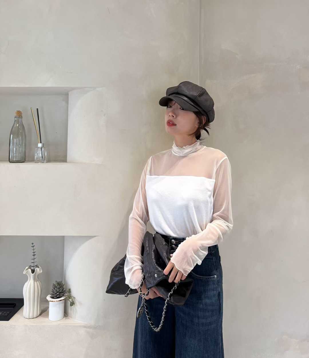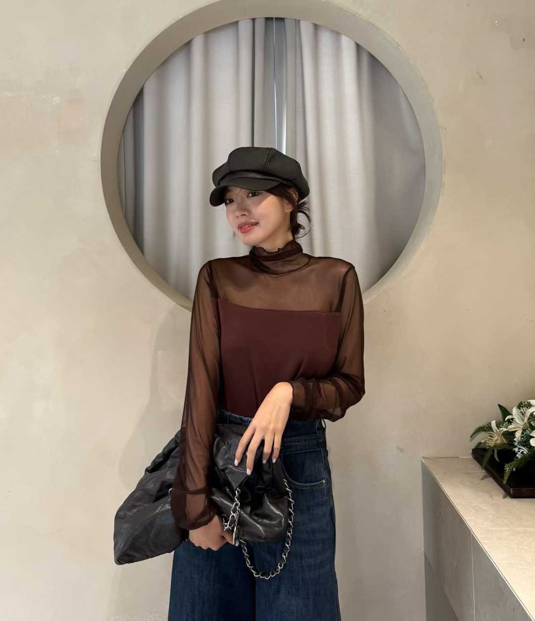 高領的設計修飾頸線,柔軟輕薄卻有穩定的挺度,