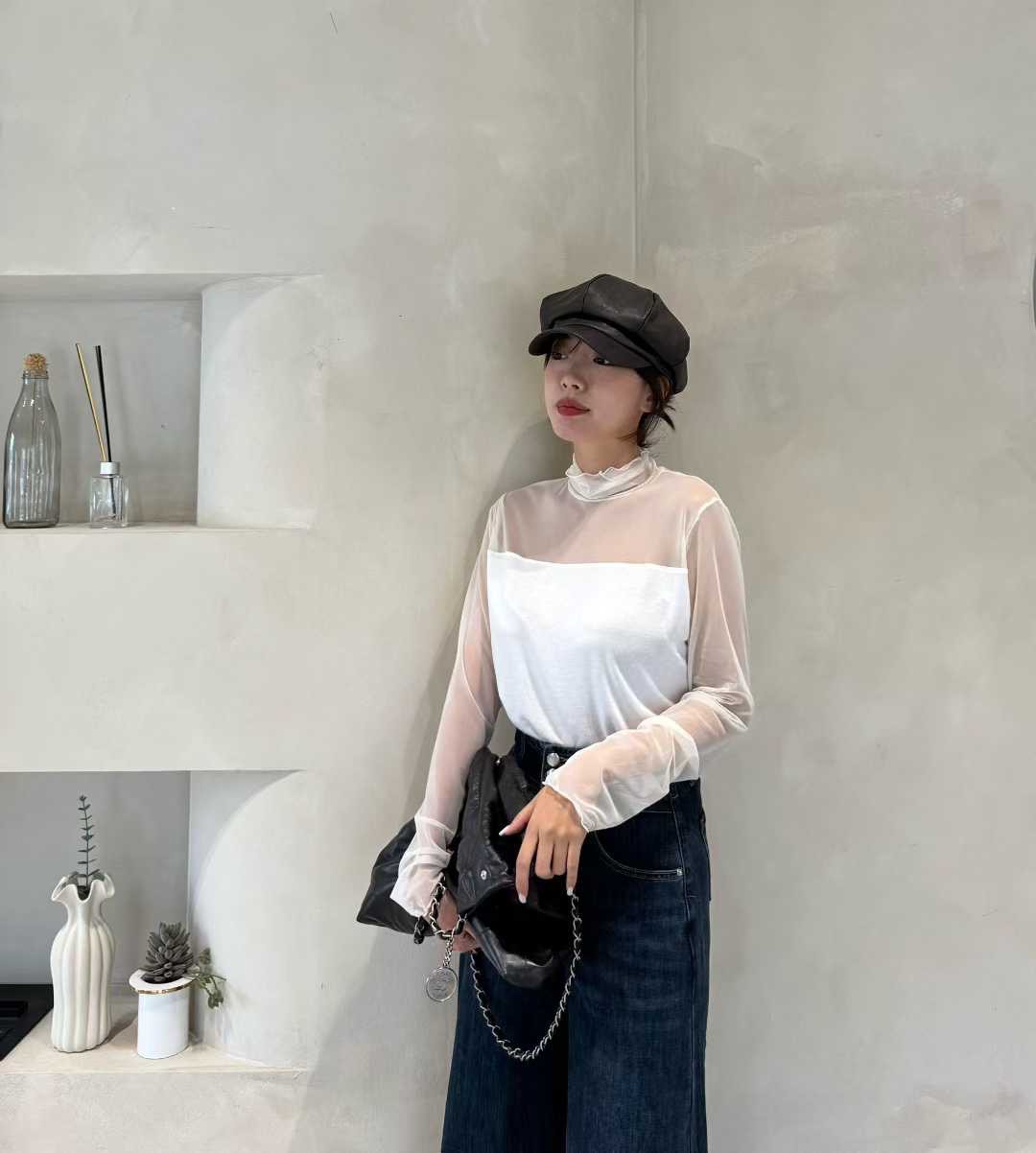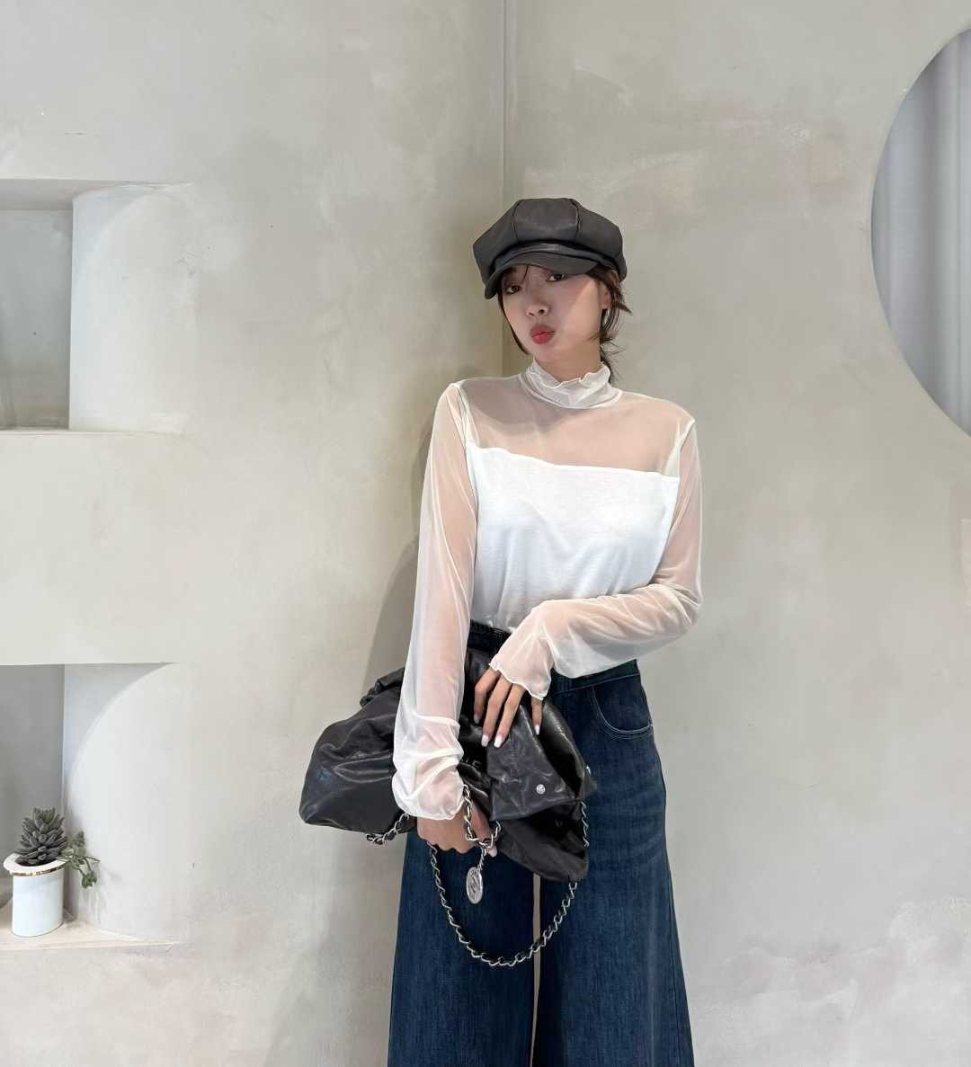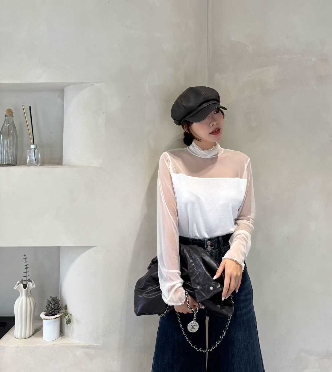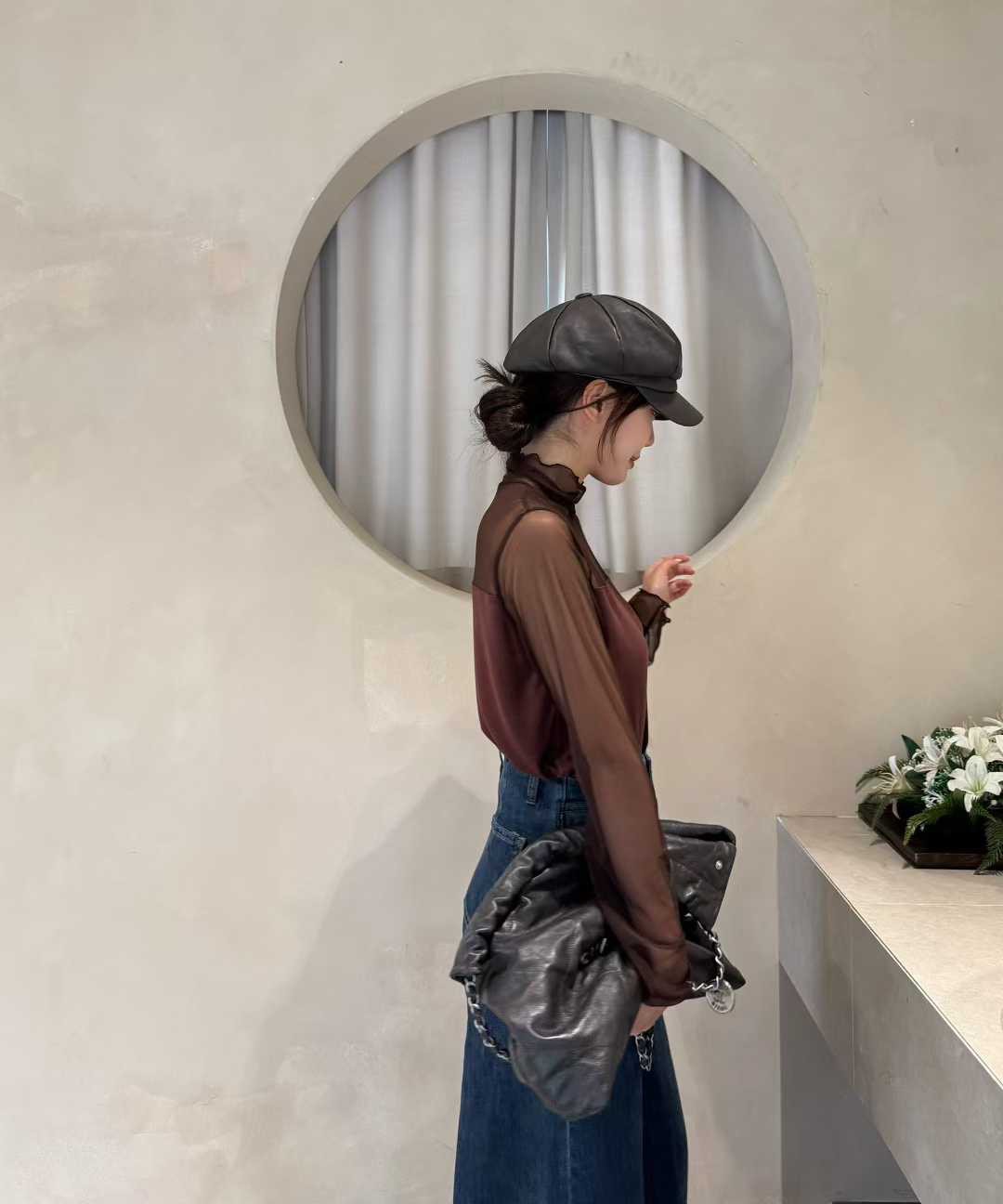 高領的設計修飾頸線,柔軟輕薄卻有穩定的挺度,