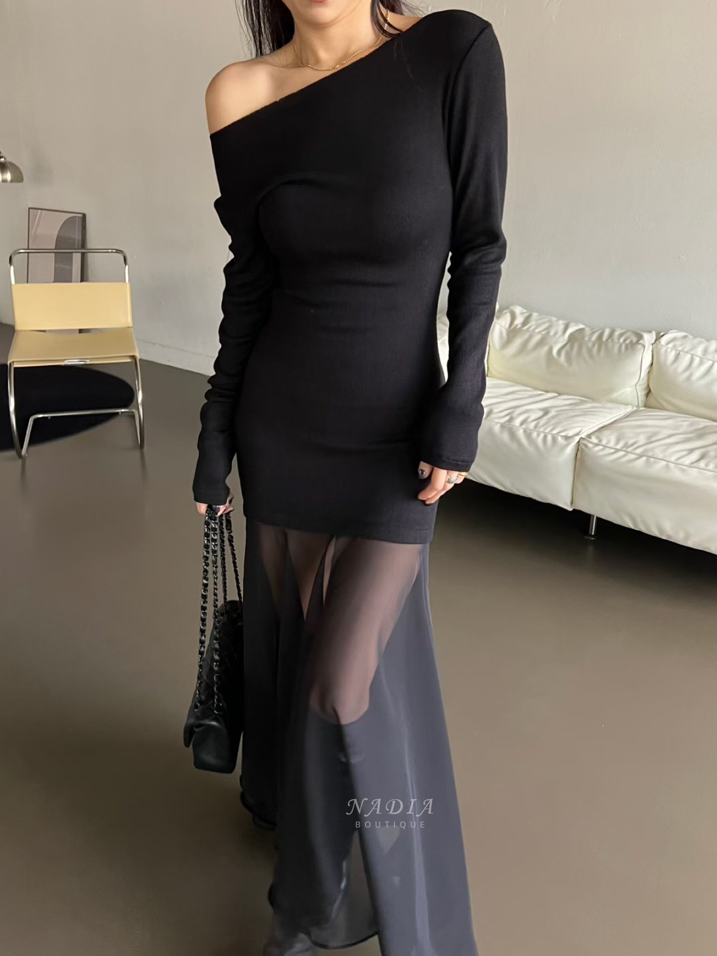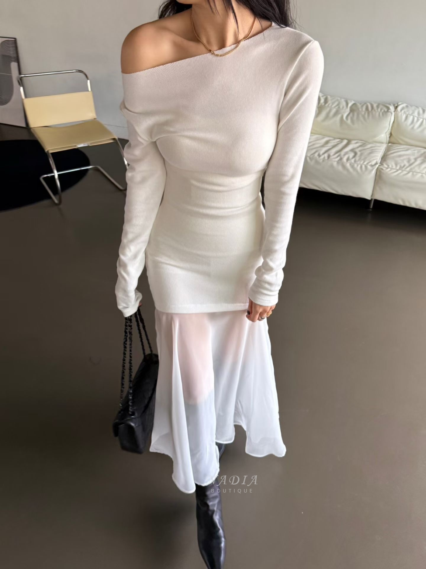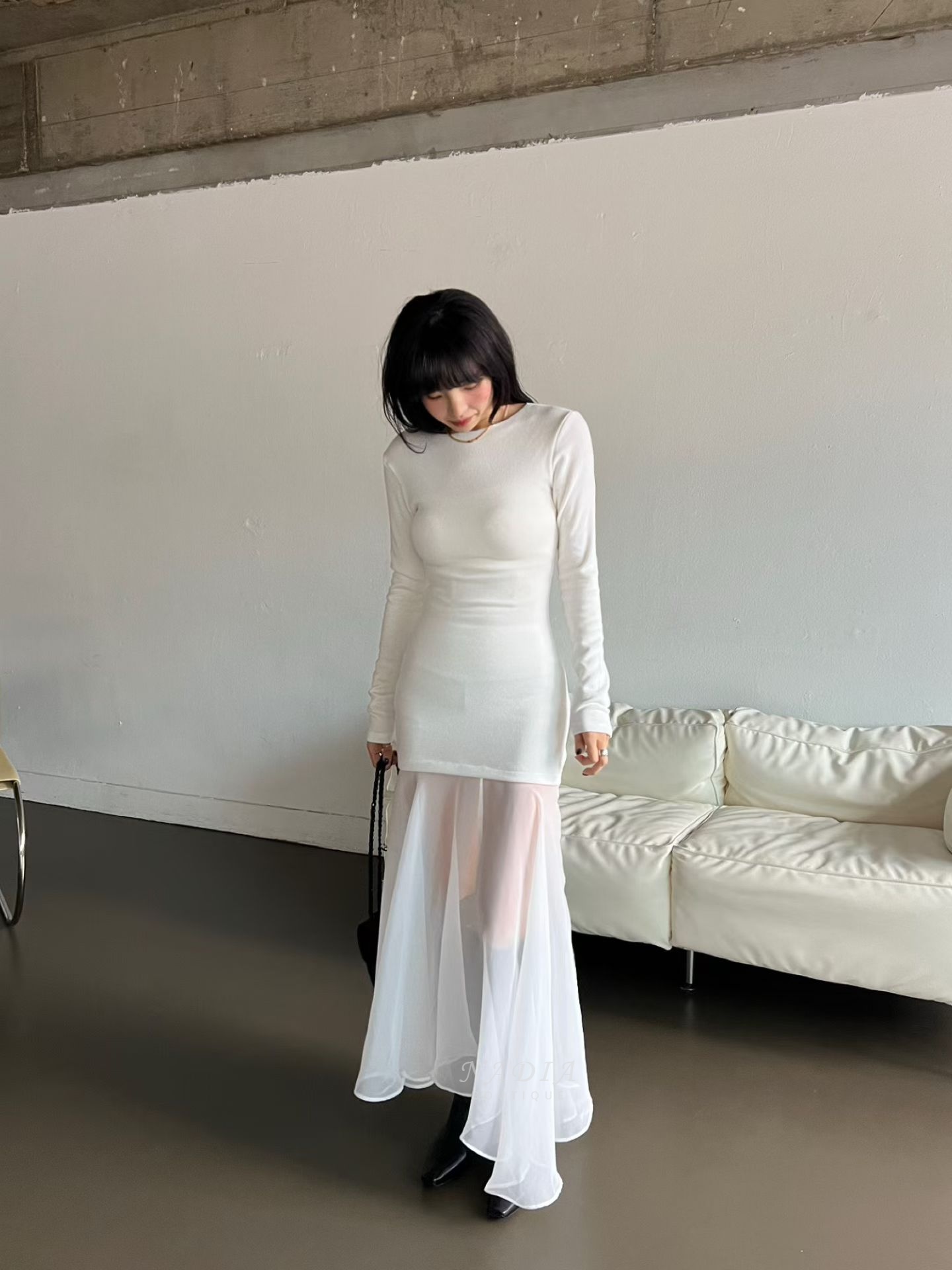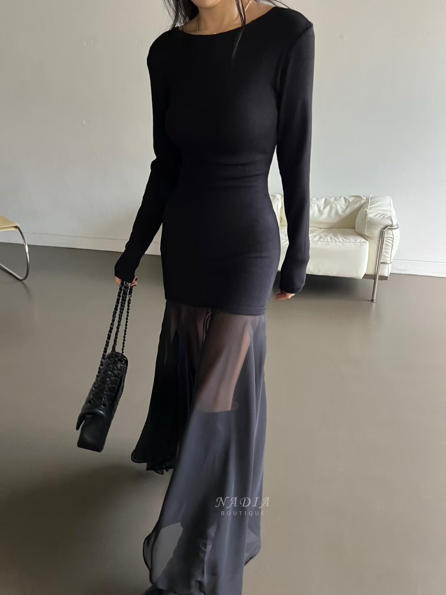 下擺雪紡拼接讓整體多了流動感,走路、轉身都很好看