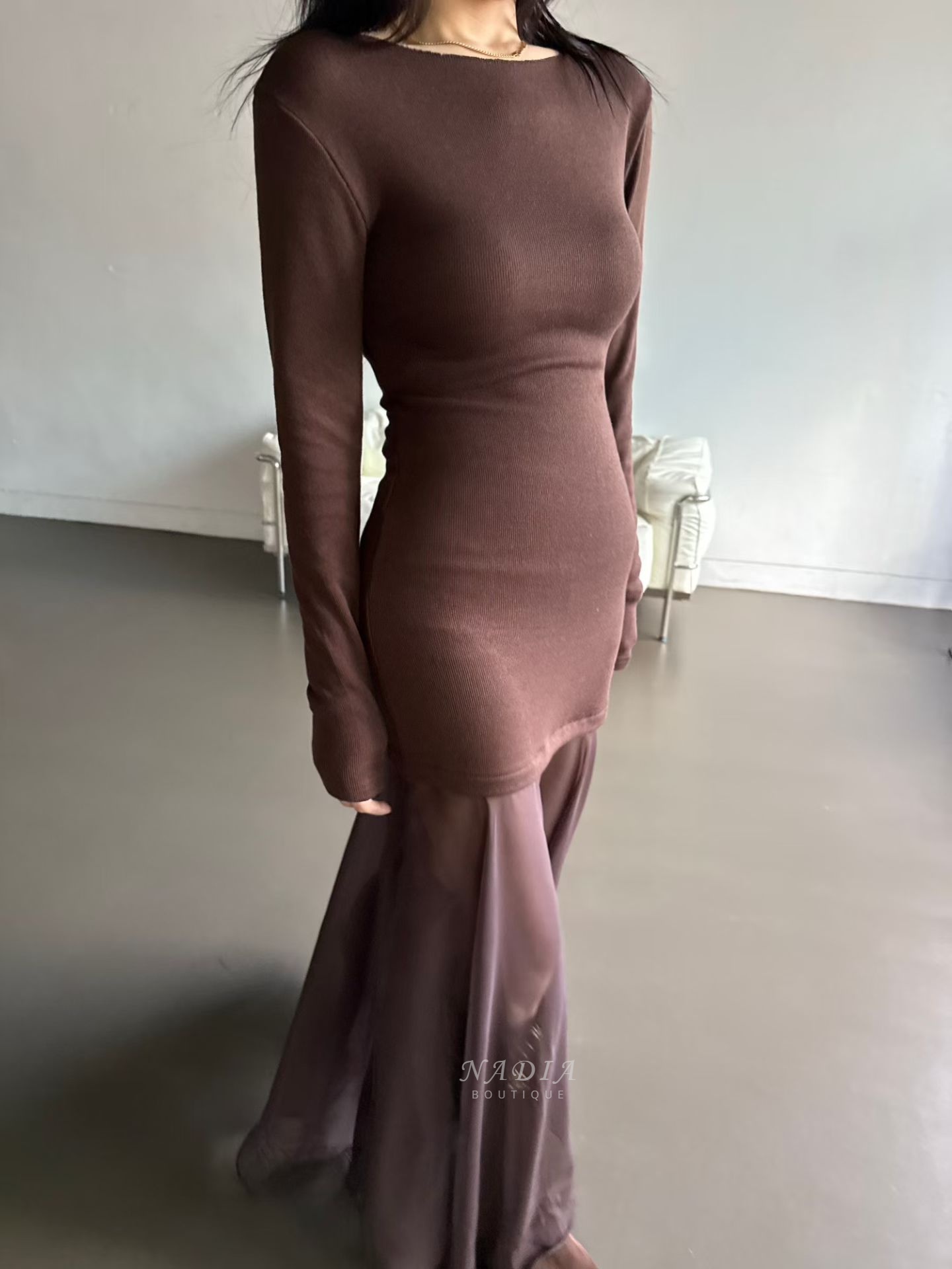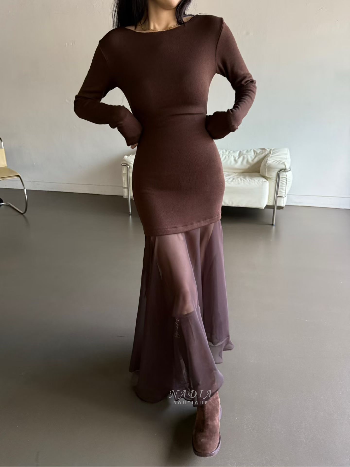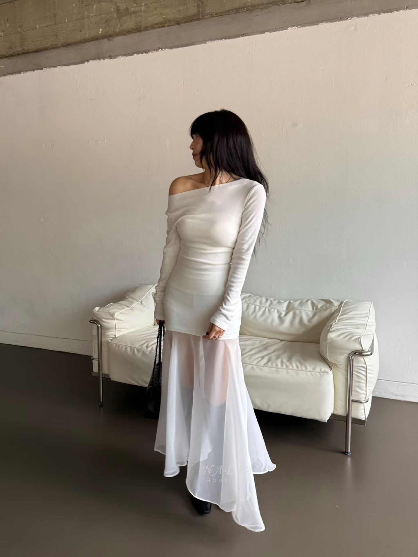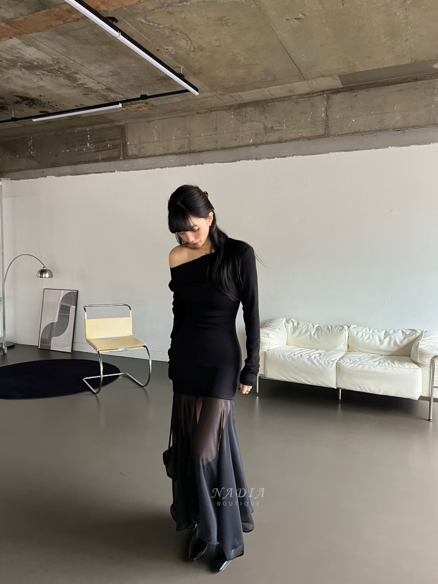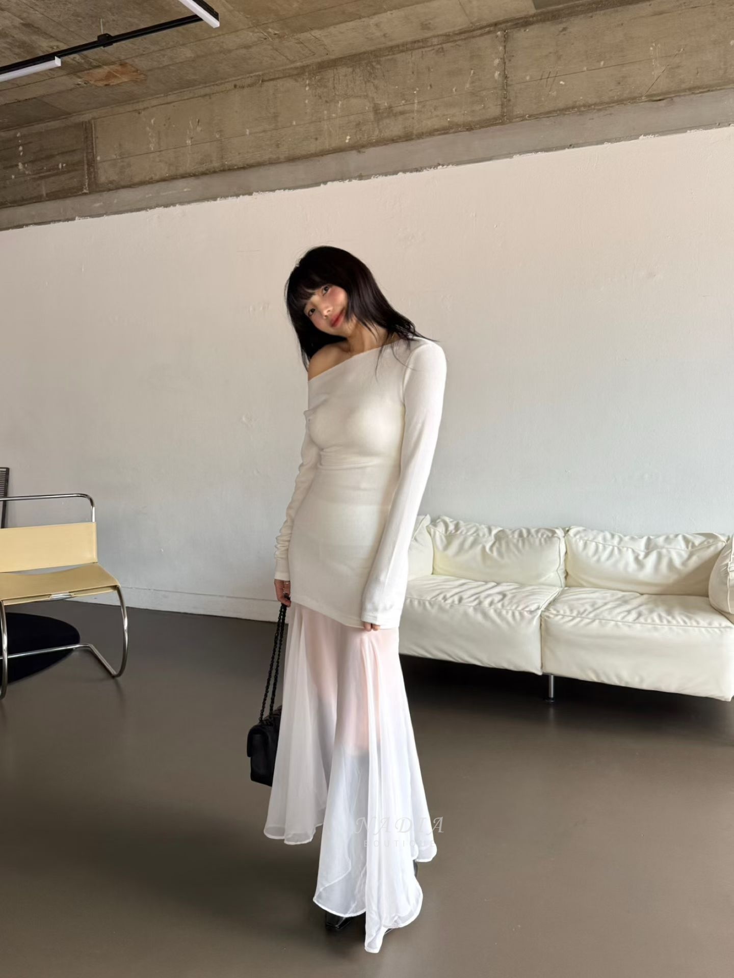 下擺雪紡拼接讓整體多了流動感,走路、轉身都很好看