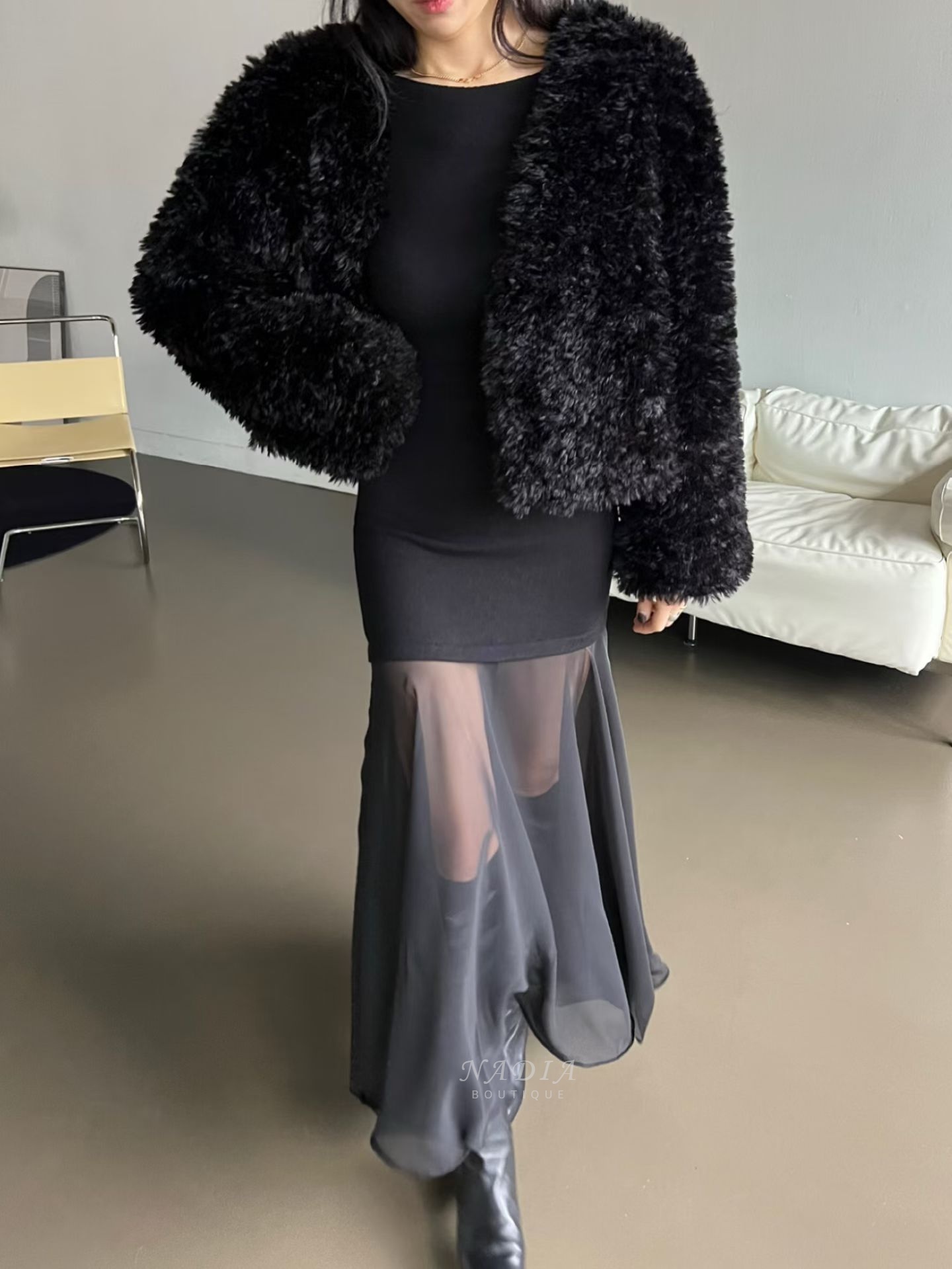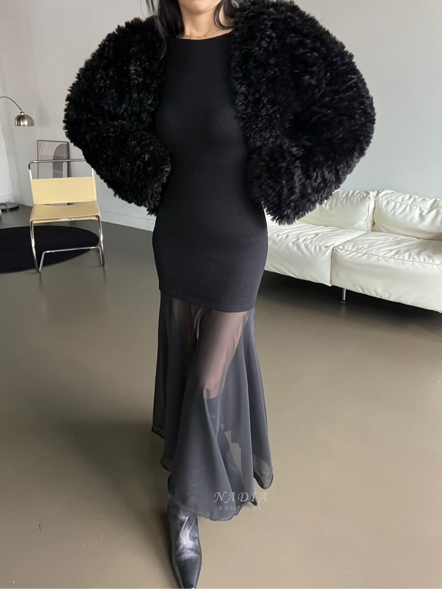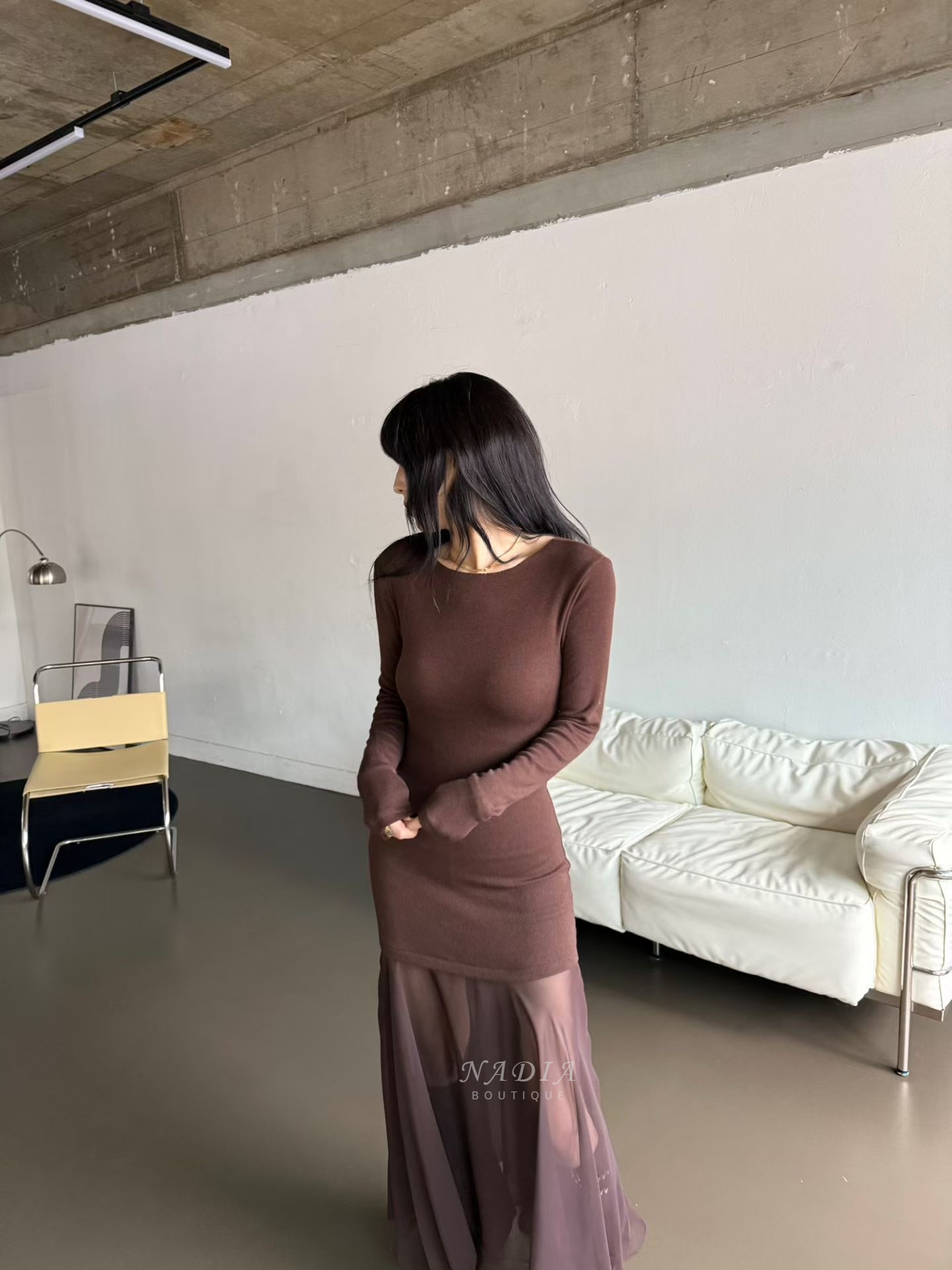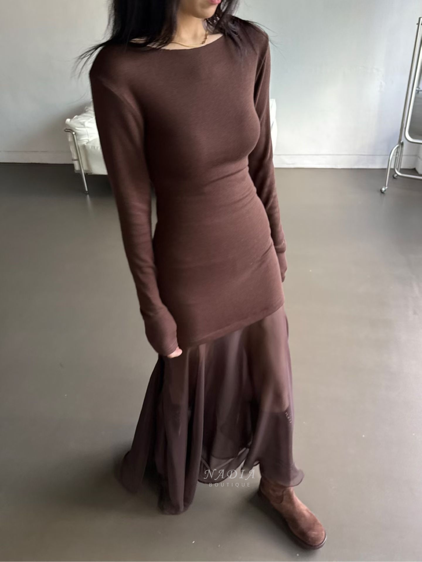 下擺雪紡拼接讓整體多了流動感,走路、轉身都很好看