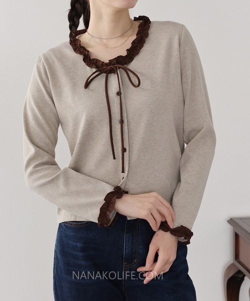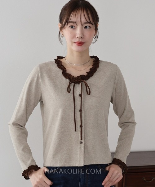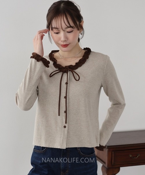 領口滾邊與細緻綁帶,讓整體多了一點法式感,但不影響日常搭配。