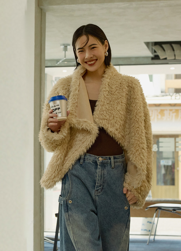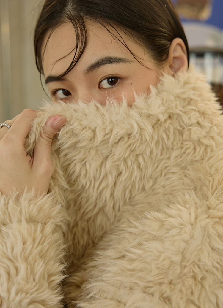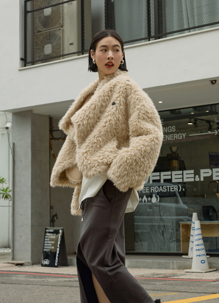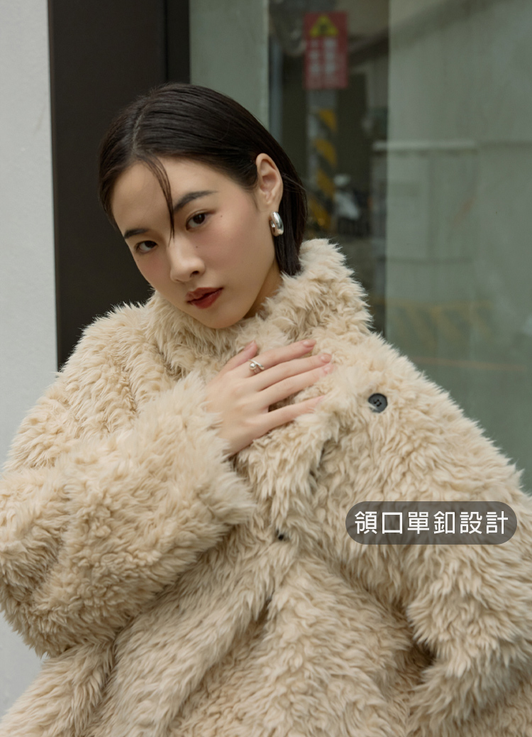 柔軟大絨毛 × 立體大翻領,穿上就是奶油系的暖甜氛圍。