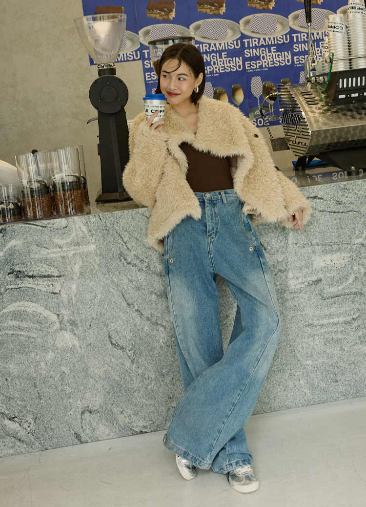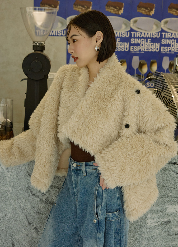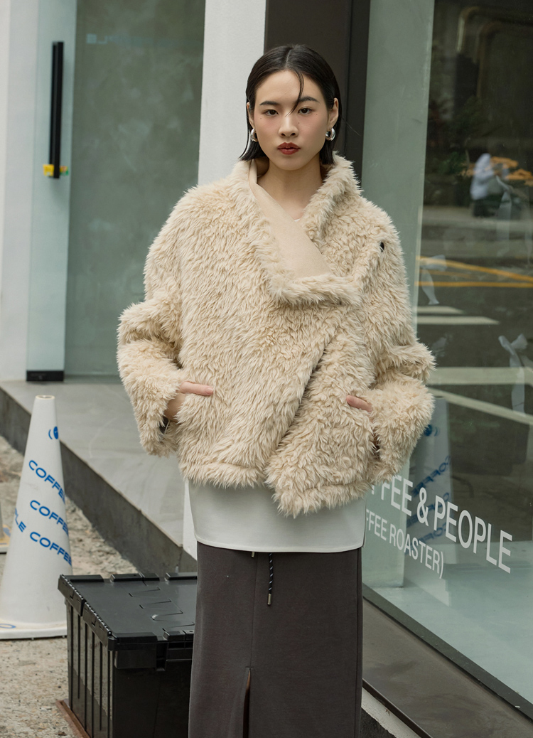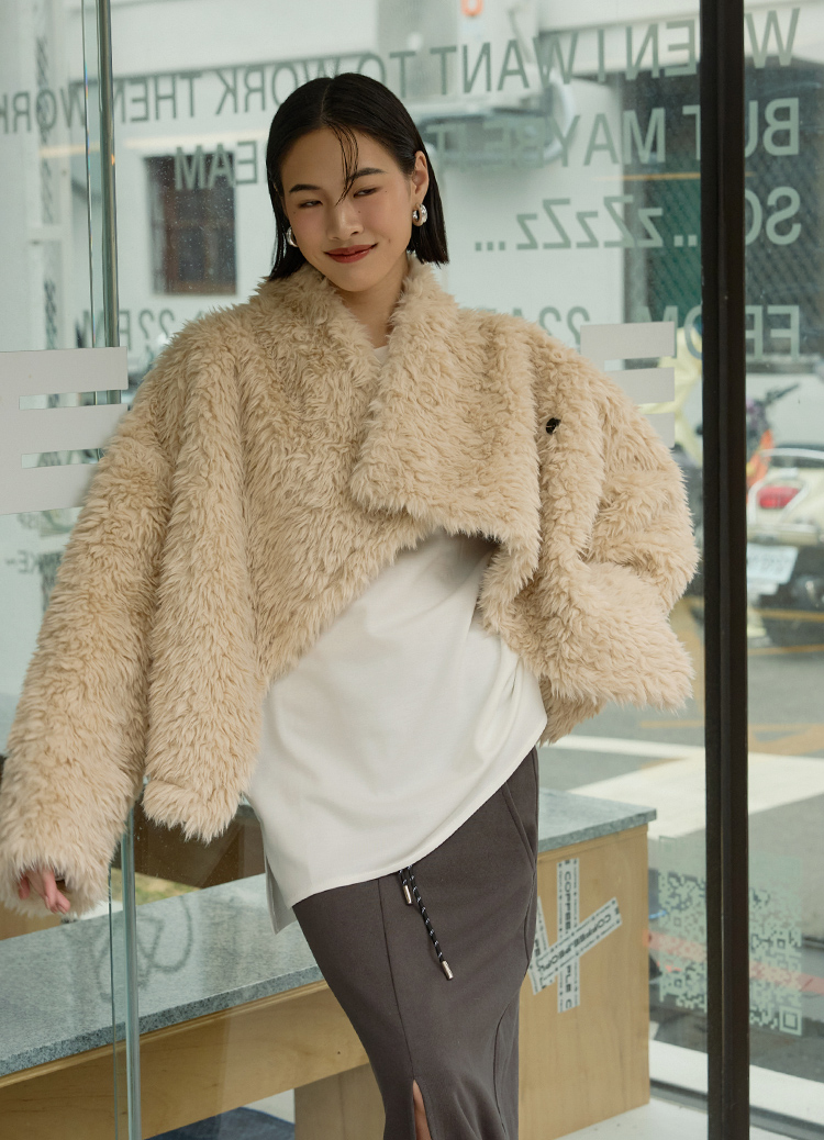 柔軟大絨毛 × 立體大翻領,穿上就是奶油系的暖甜氛圍。