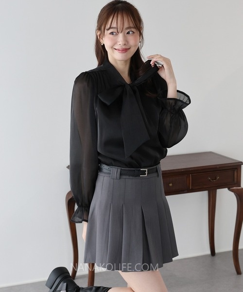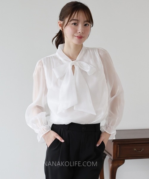 大蝴蝶結領口設計修飾臉型,瞬間提升整體的柔美女人味。