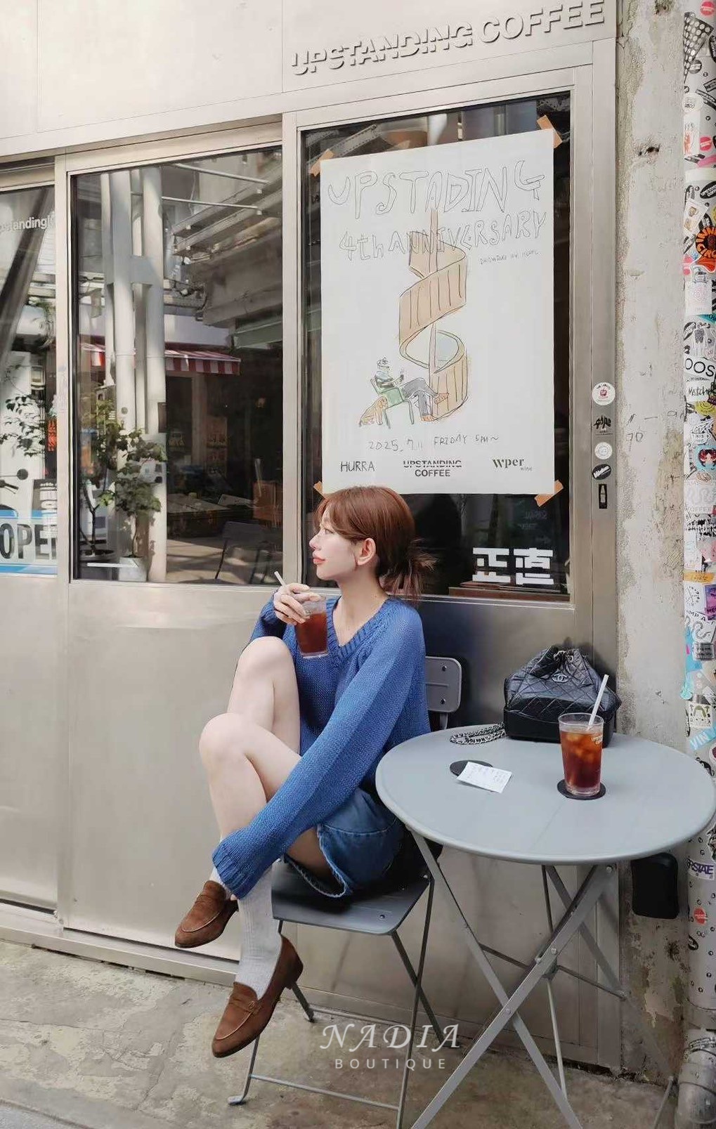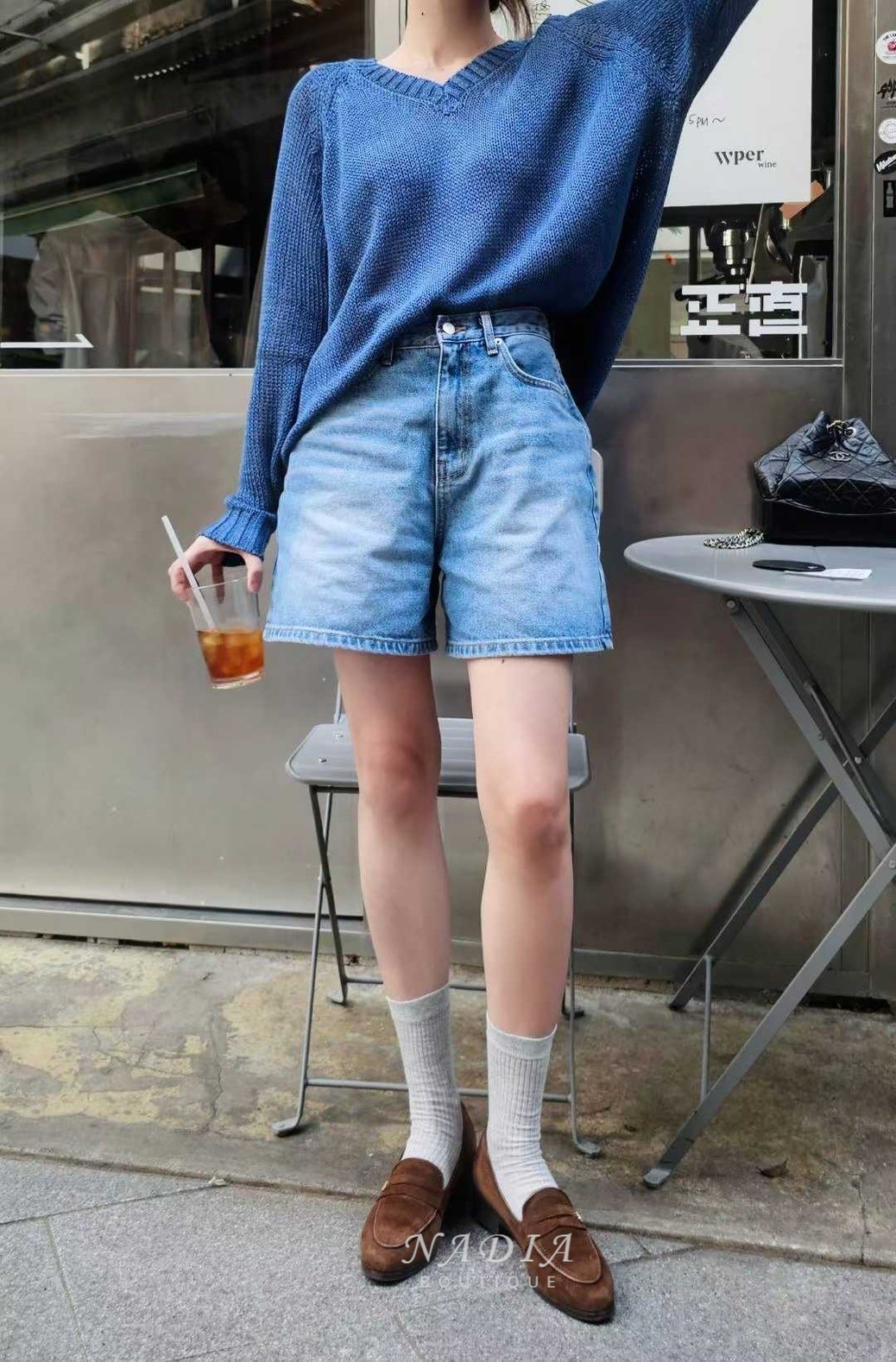 牛仔褲就很有韓系咖啡廳氛圍。版型微寬鬆但不會臃腫,單