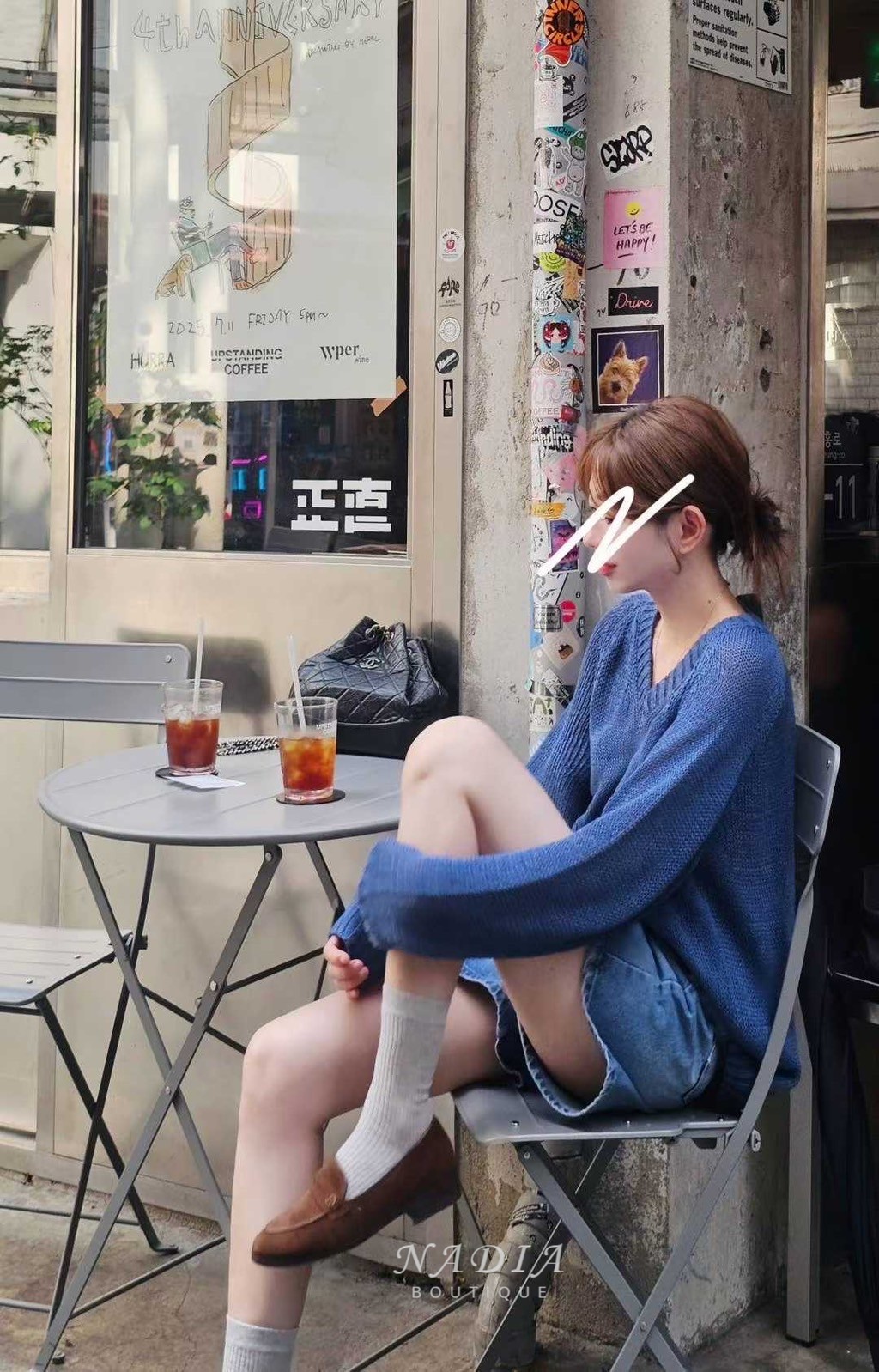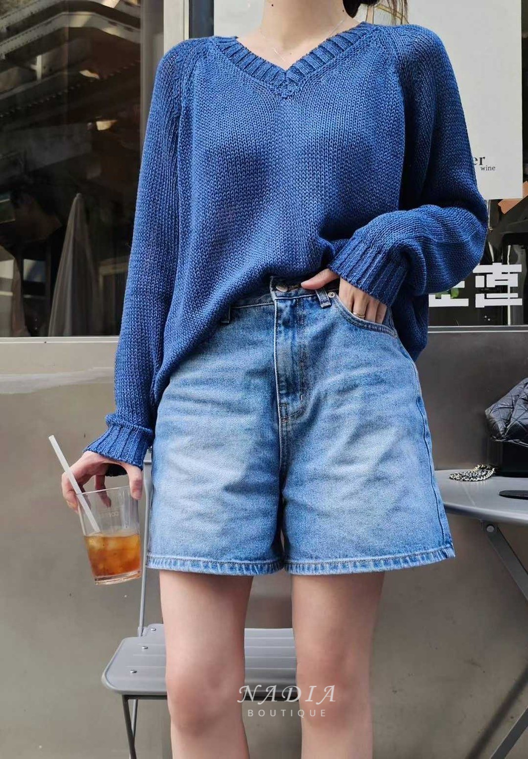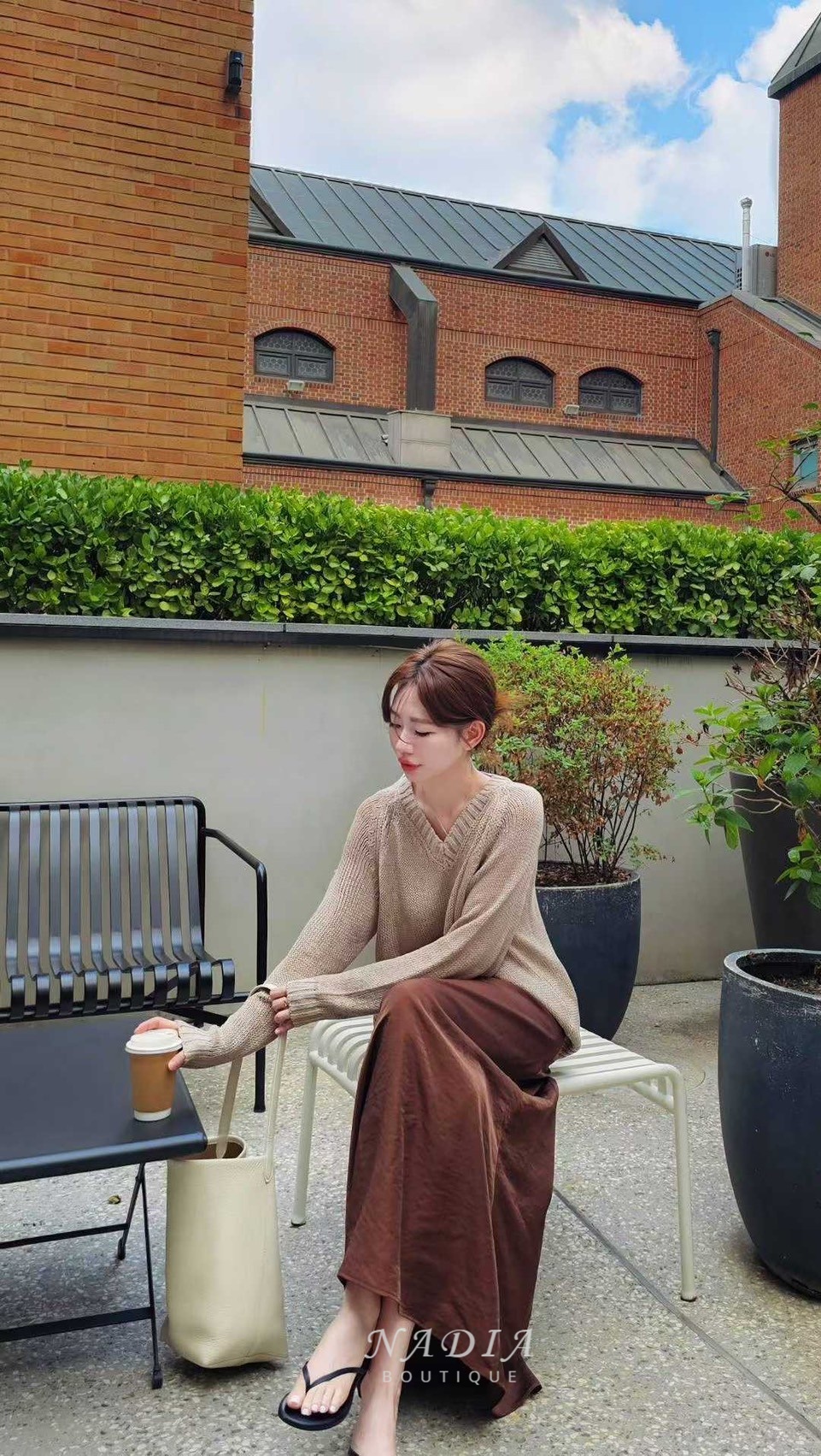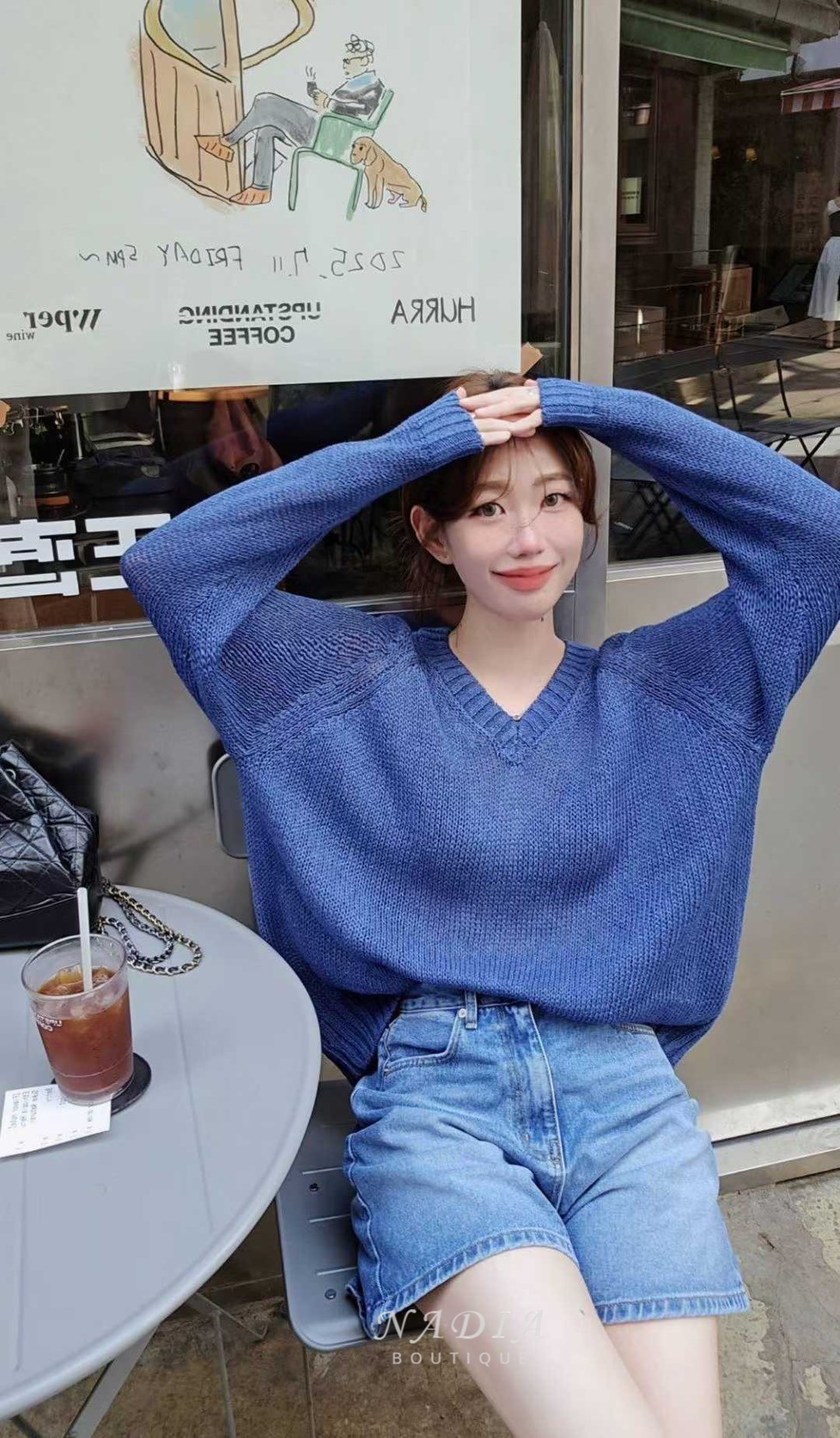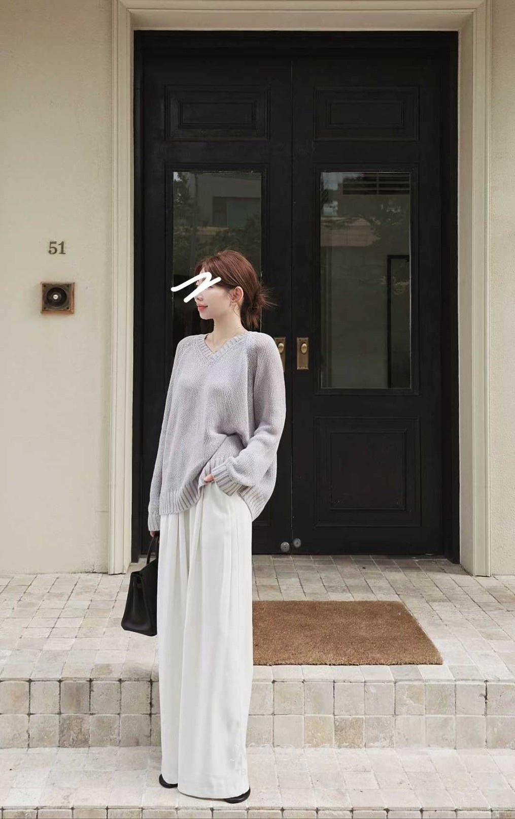 它是那種一穿就有質感的「慵懶V領針織上衣」,