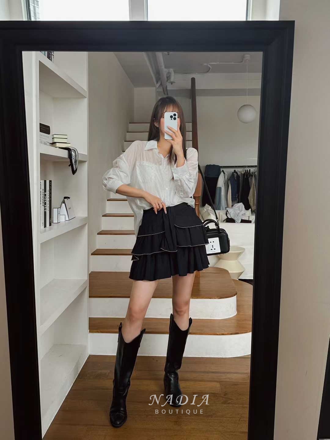 層層的荷葉設計超有氛圍,走起路來裙擺會自然飄動,