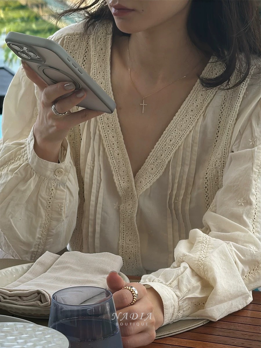 V滿版立體刺繡+細緻蕾絲拼接,每個走線都超工整,質感完全拉滿。