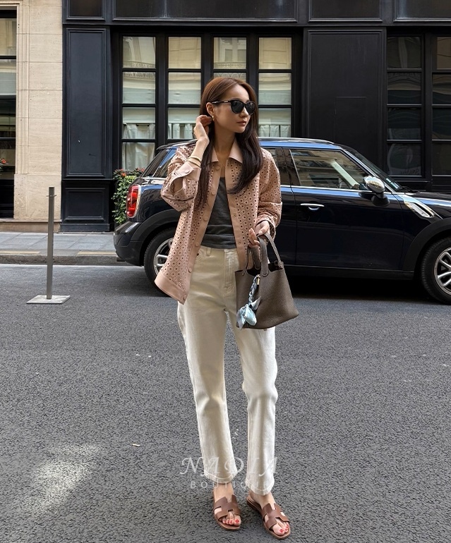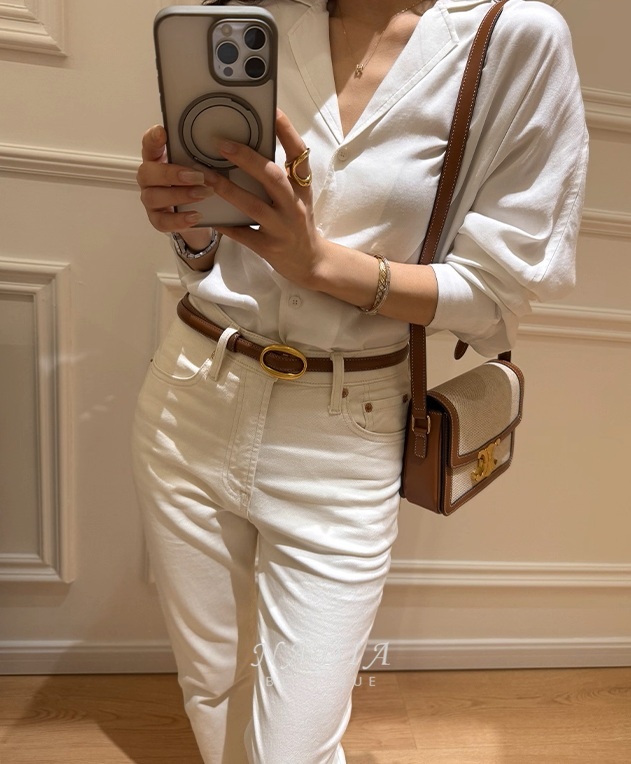 它不是那種會顯胖或顯透的白色,布料厚實帶挺度,