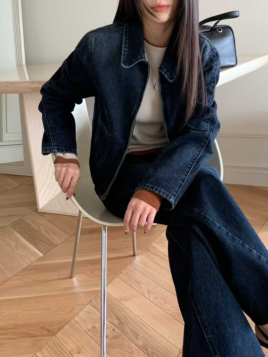 深靛藍的復古刷色很少見,單穿就有氣場,搭上同系列外套更是整套歐美街拍 vibe。