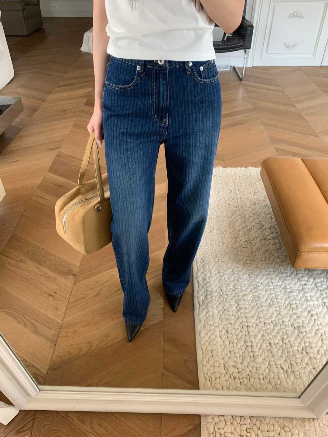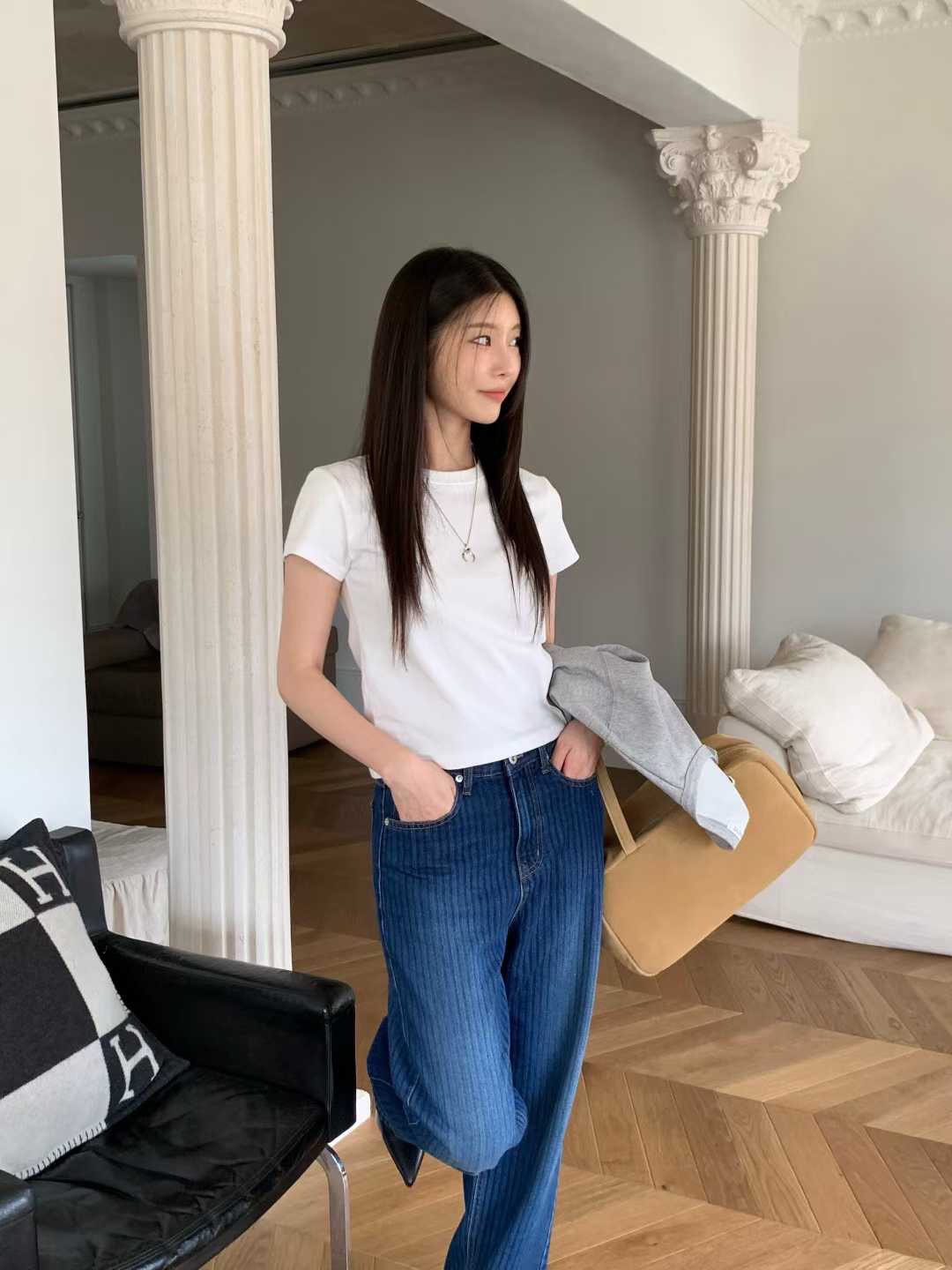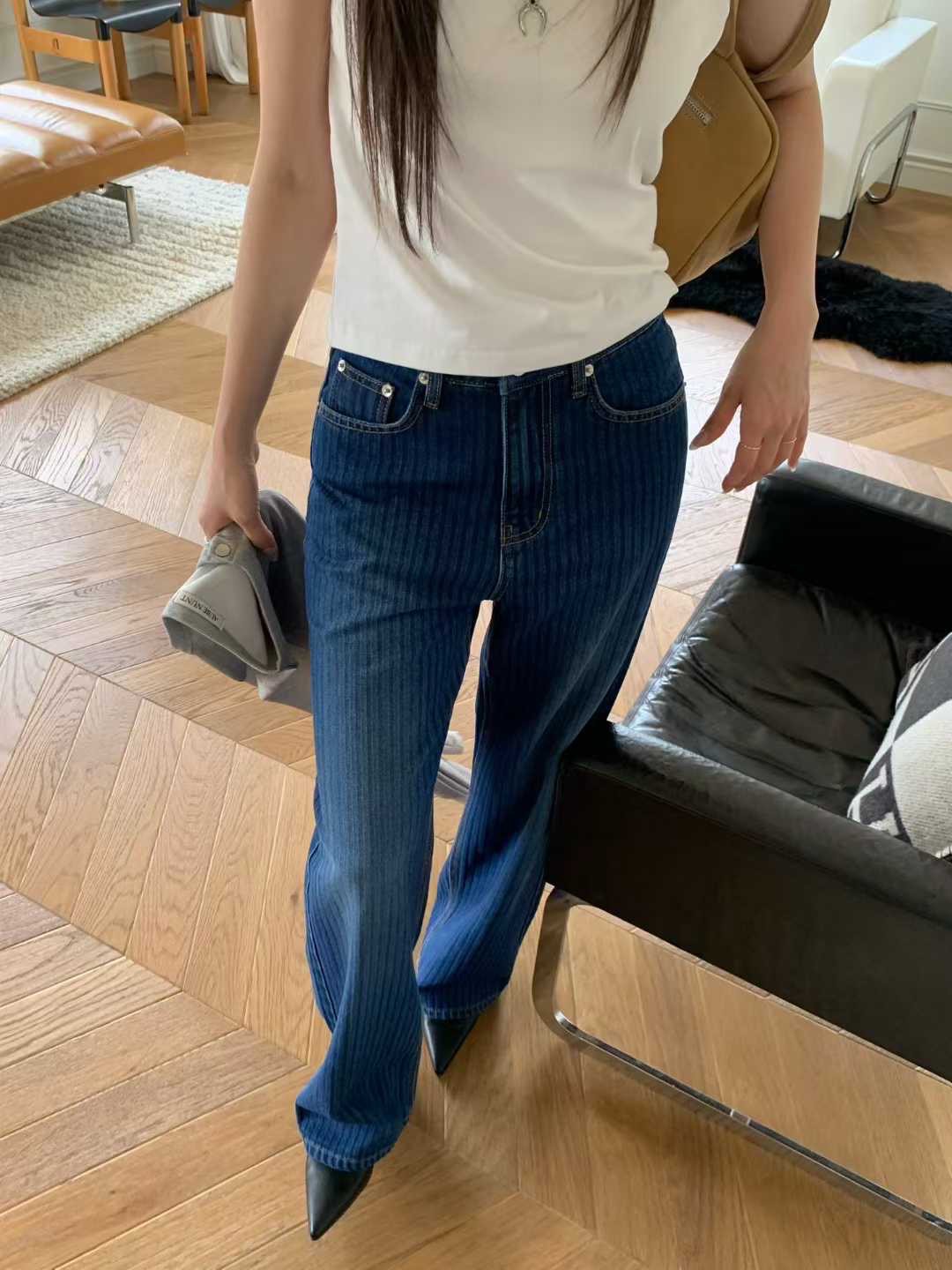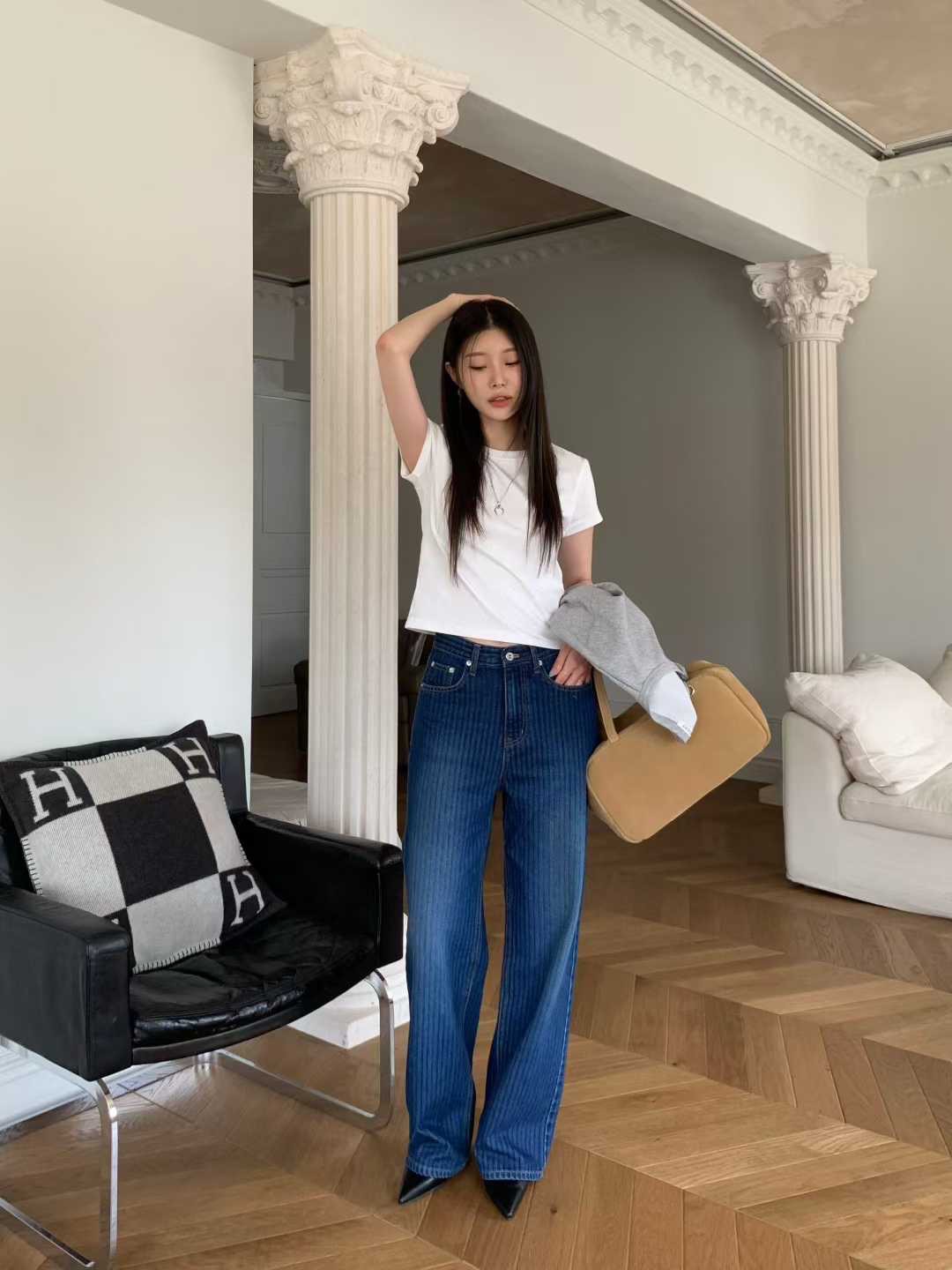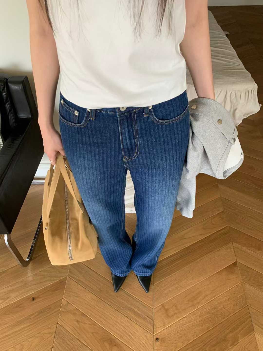 微微的條紋設計拉長腿型,讓直筒版型更顯俐落修長。