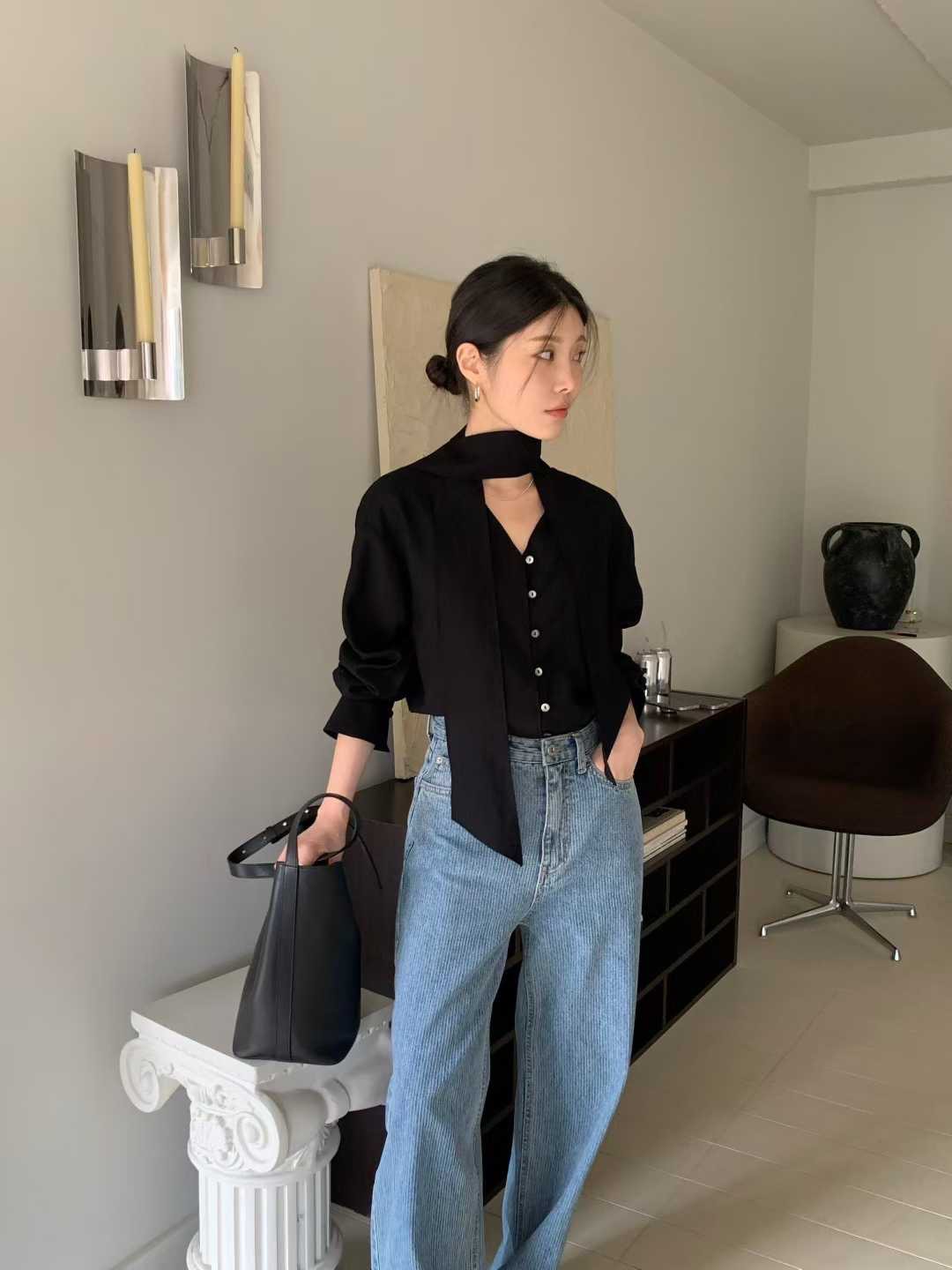 高腰剪裁讓比例瞬間變 170,屁股線條也乖乖收好,背影超加分。