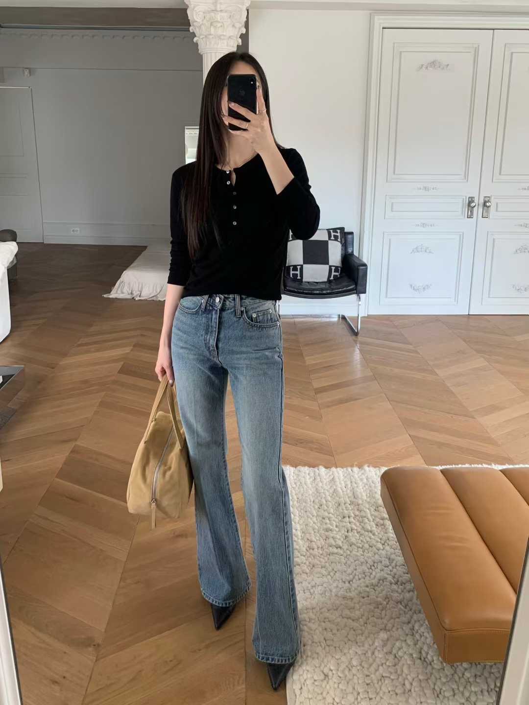 這件牛仔褲完全幫妳解決!版型是直線修身設計,不