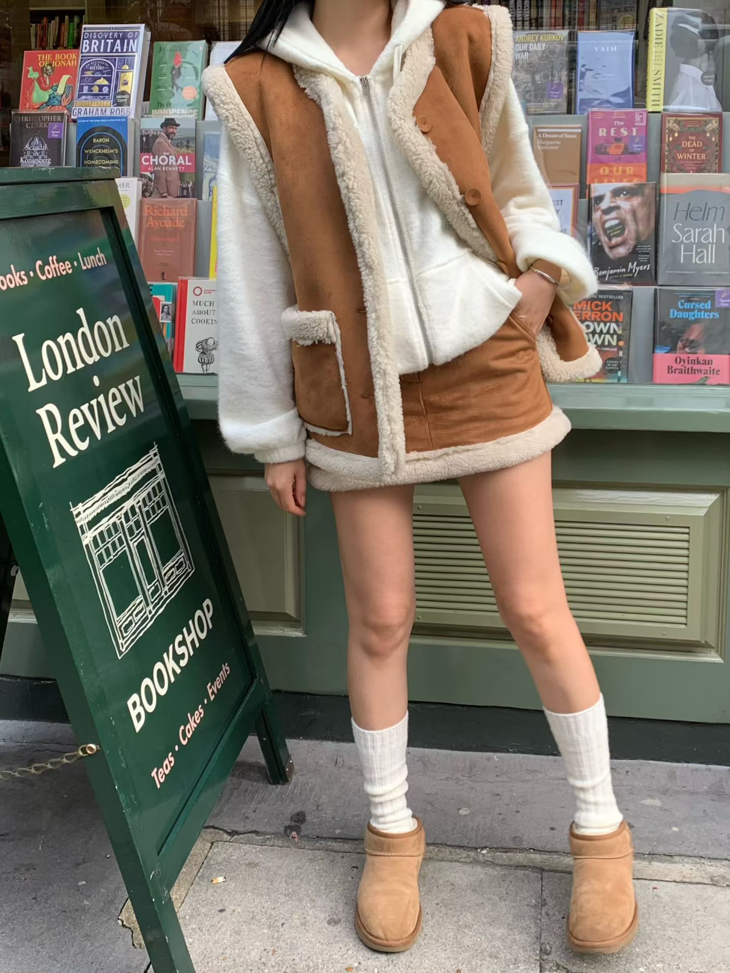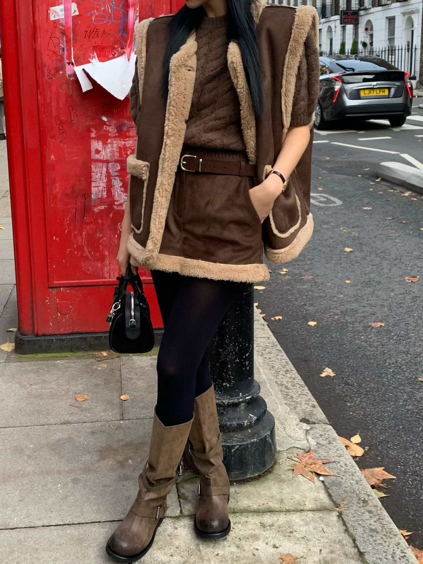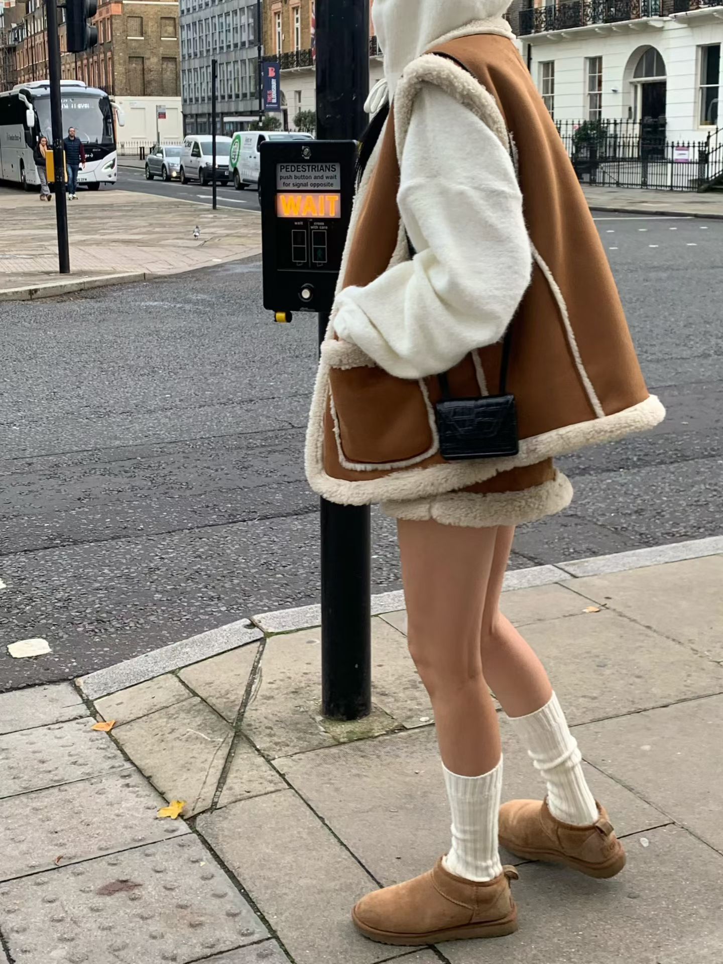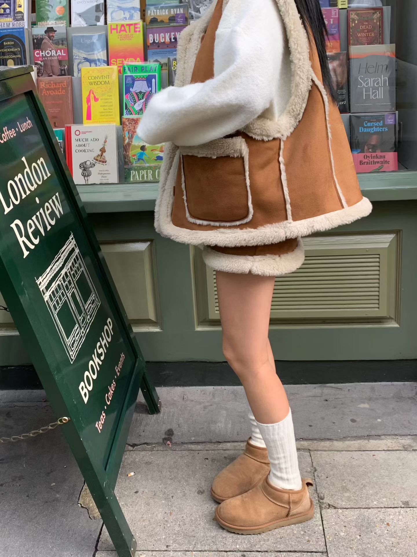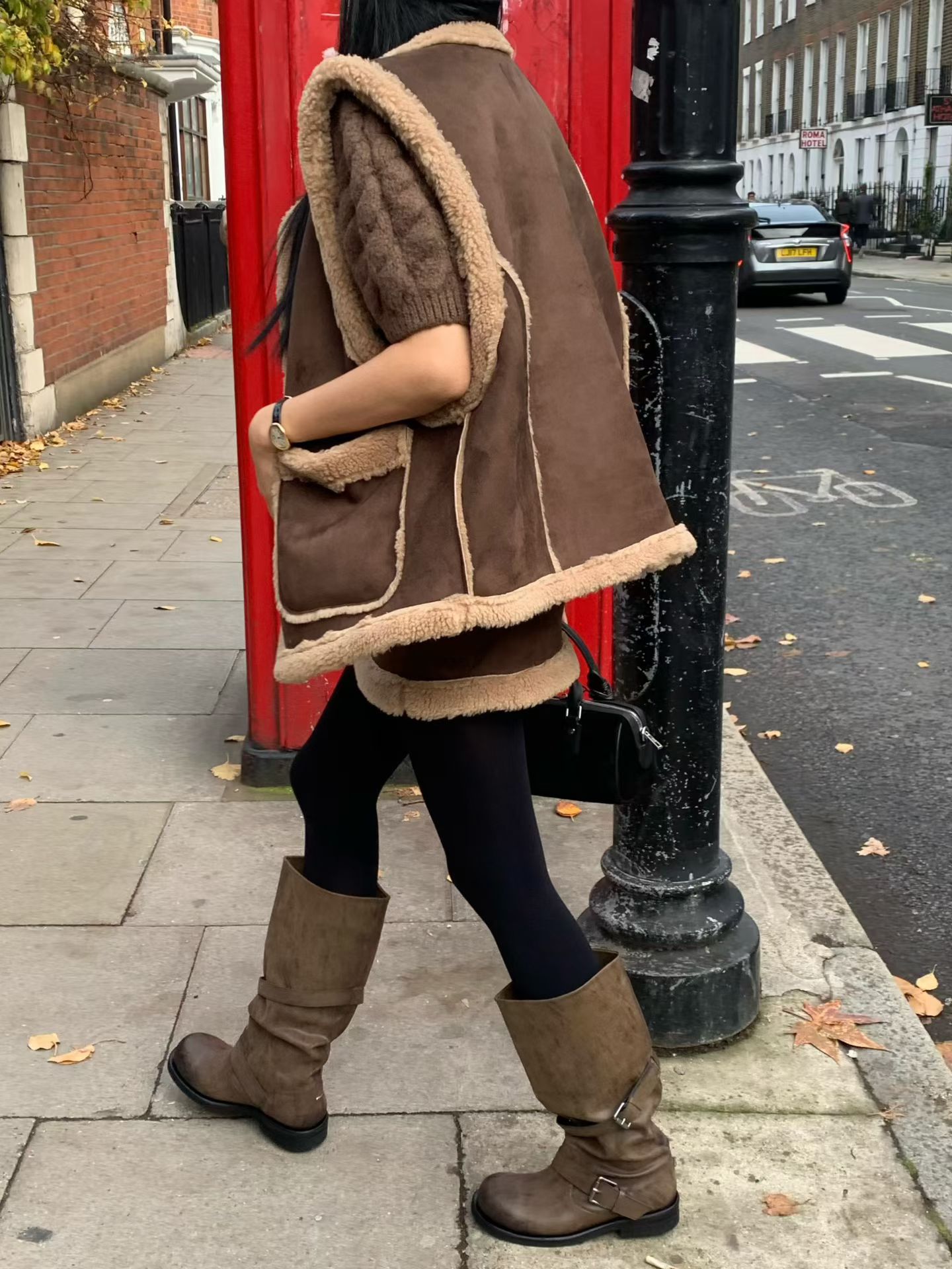 外層是霧面麂皮、內層滿滿柔軟毛呢,穿上瞬間變得很有氣勢
