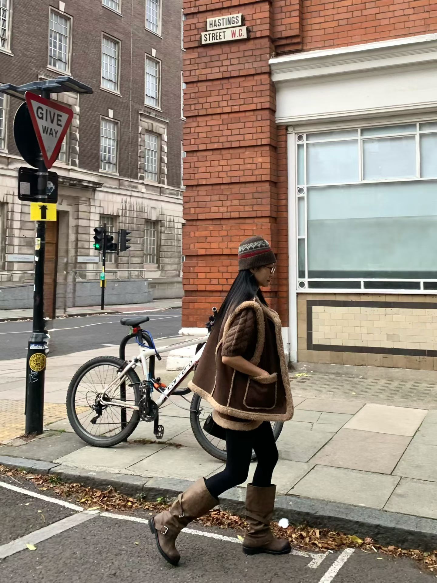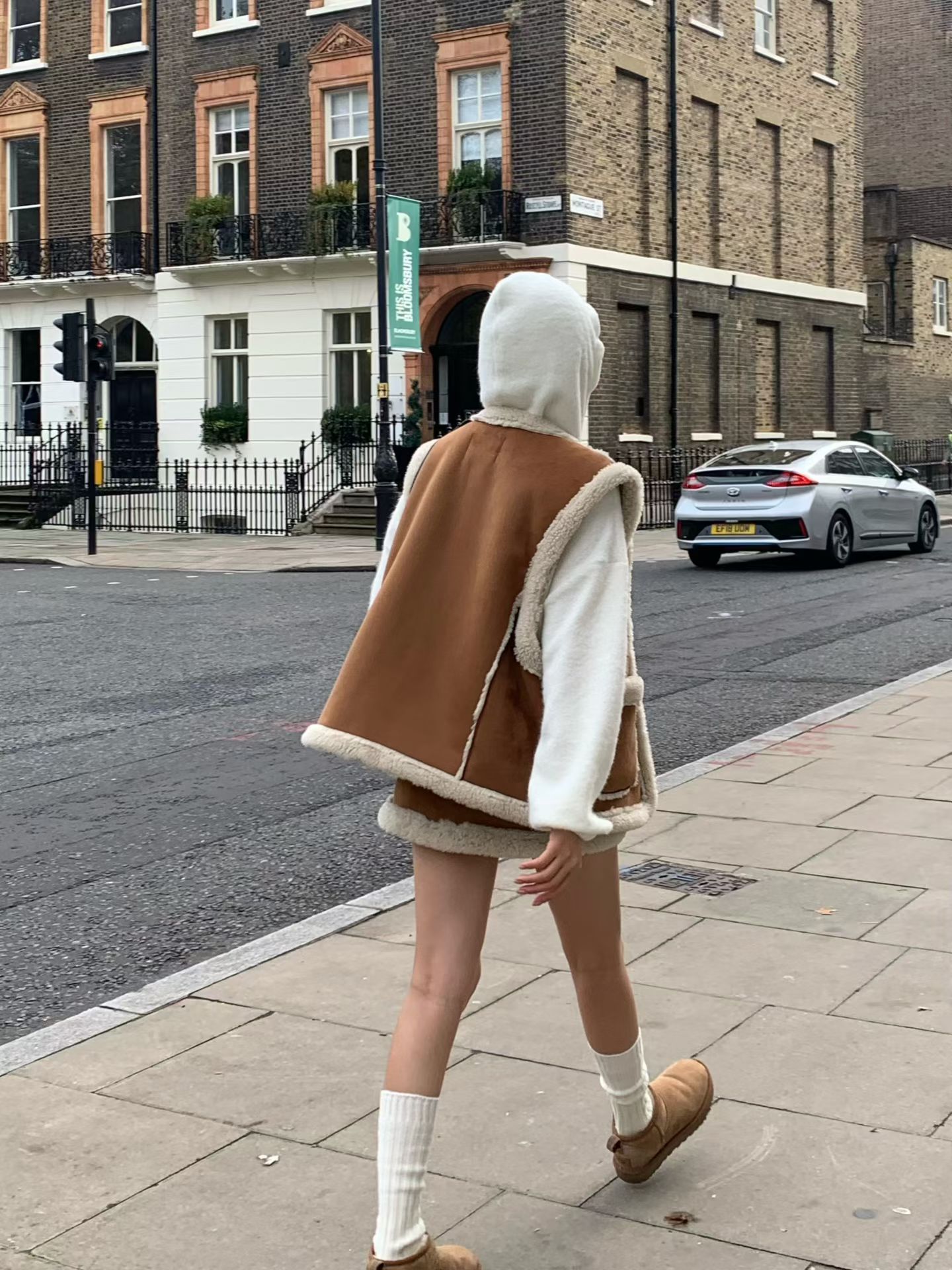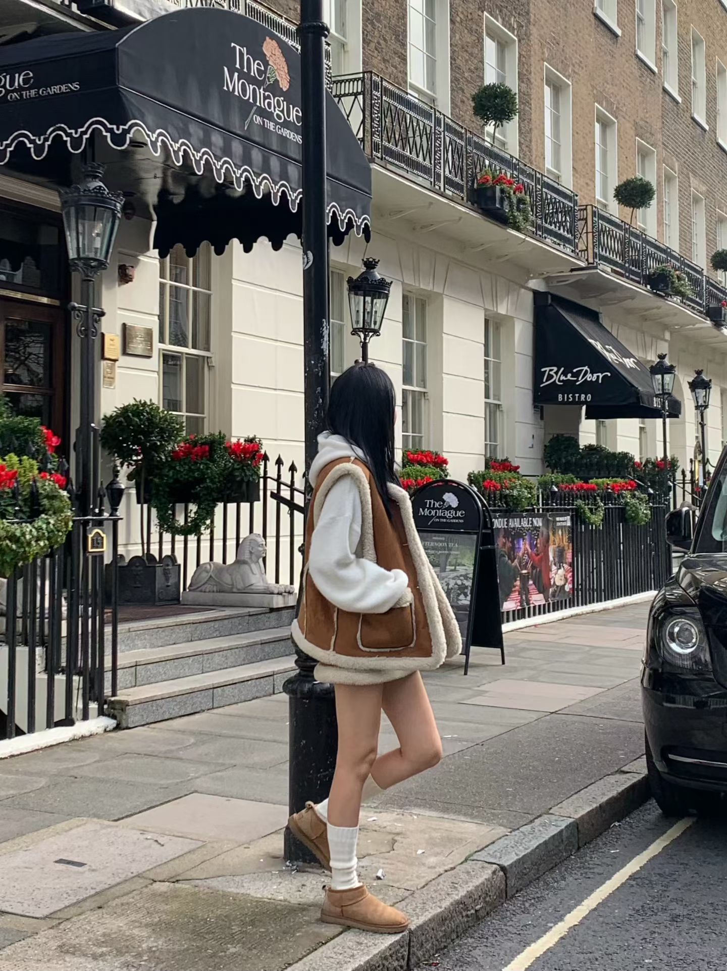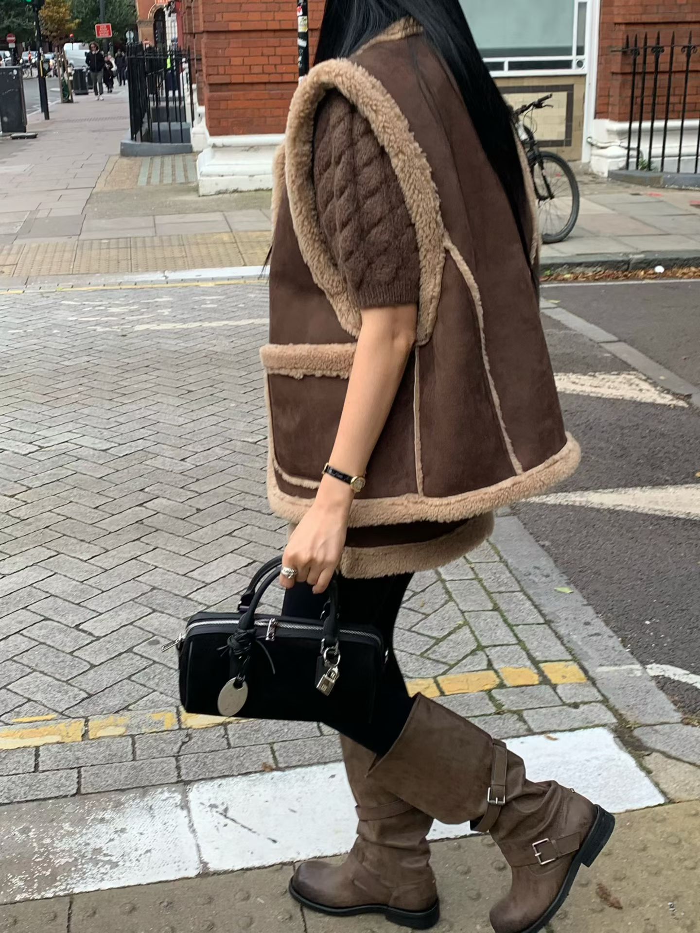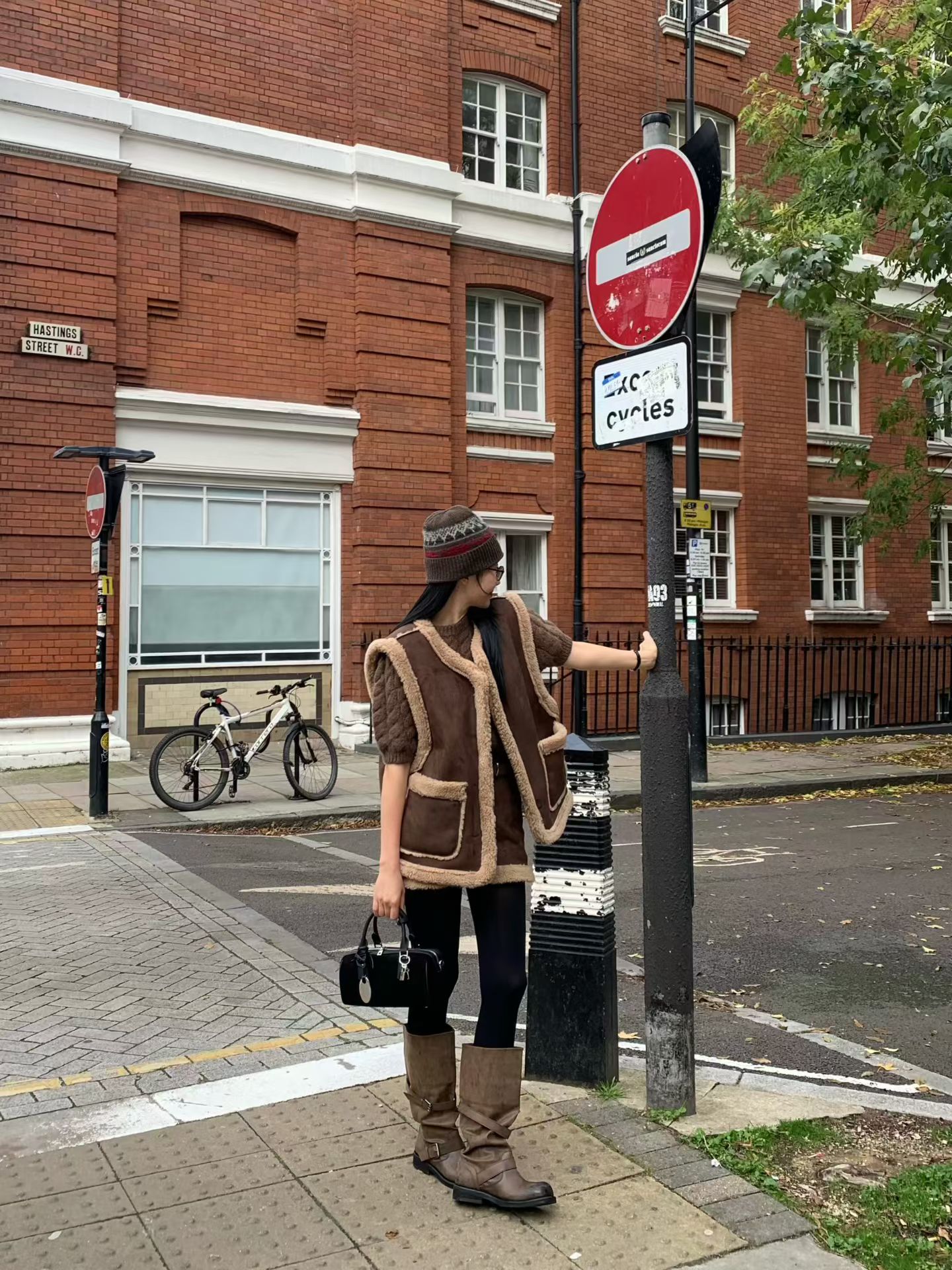 外層是霧面麂皮、內層滿滿柔軟毛呢,穿上瞬間變得很有氣勢
