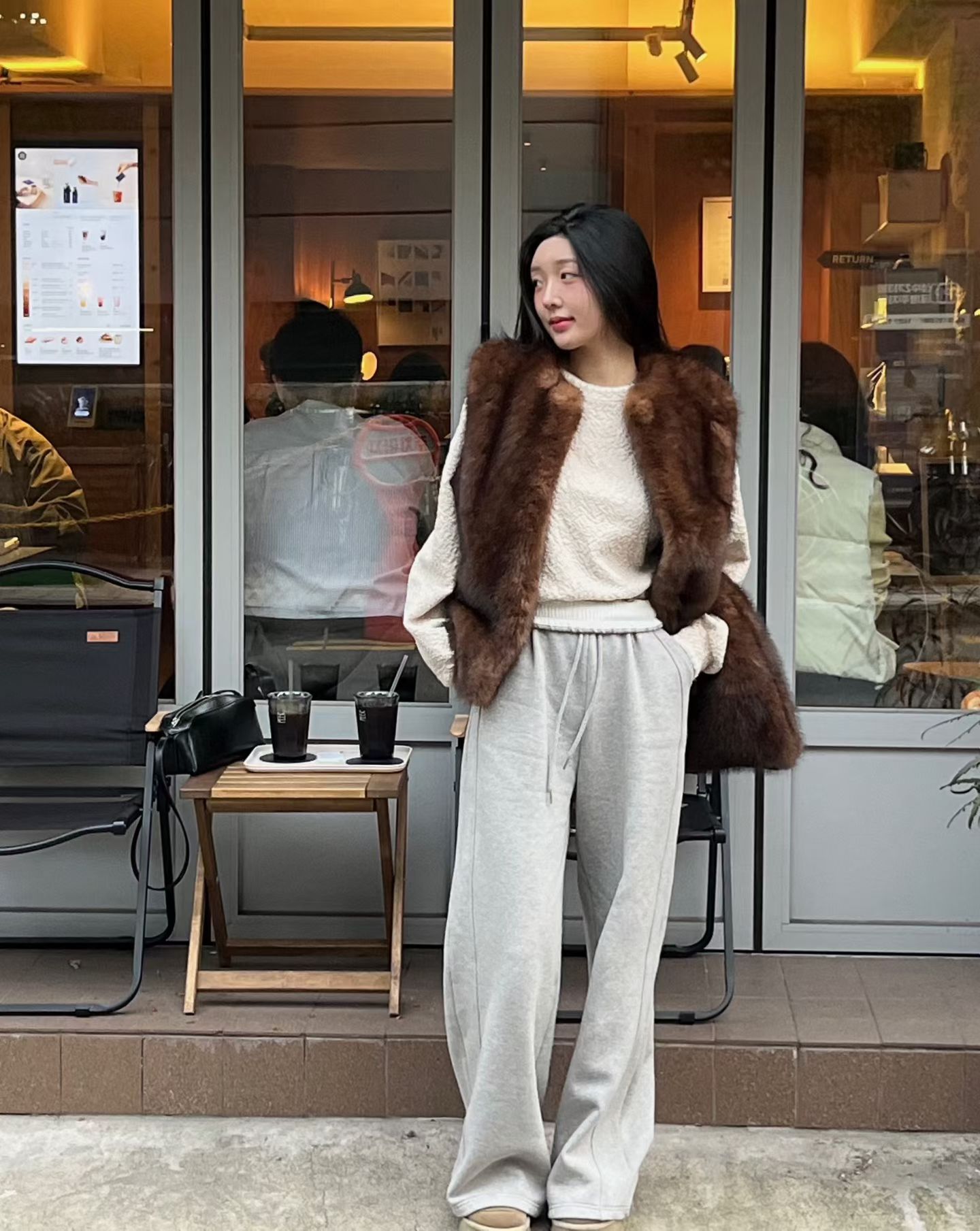 柔軟厚實的高密度仿皮草材質,觸感細緻、不厚重卻極具存在感。