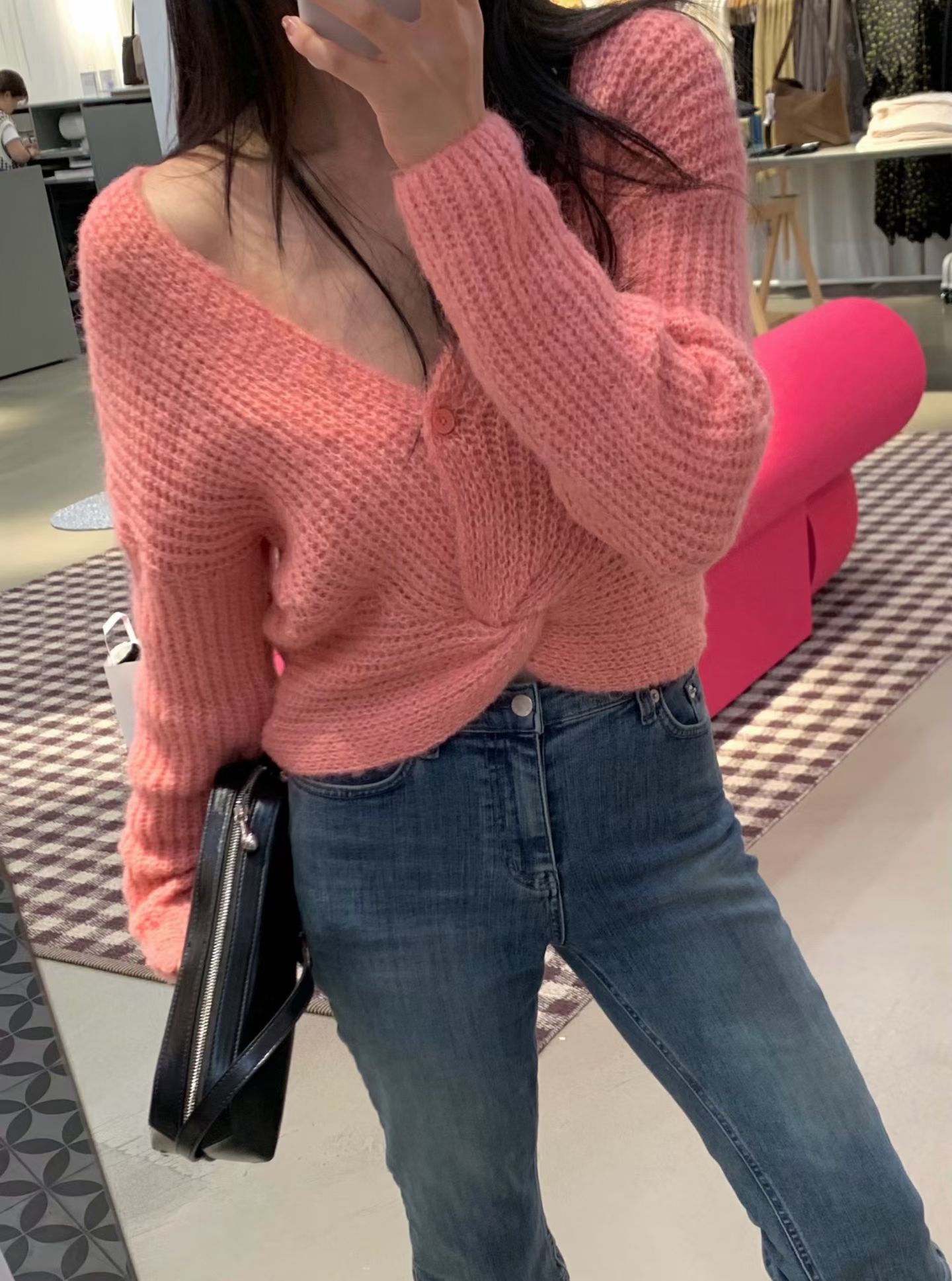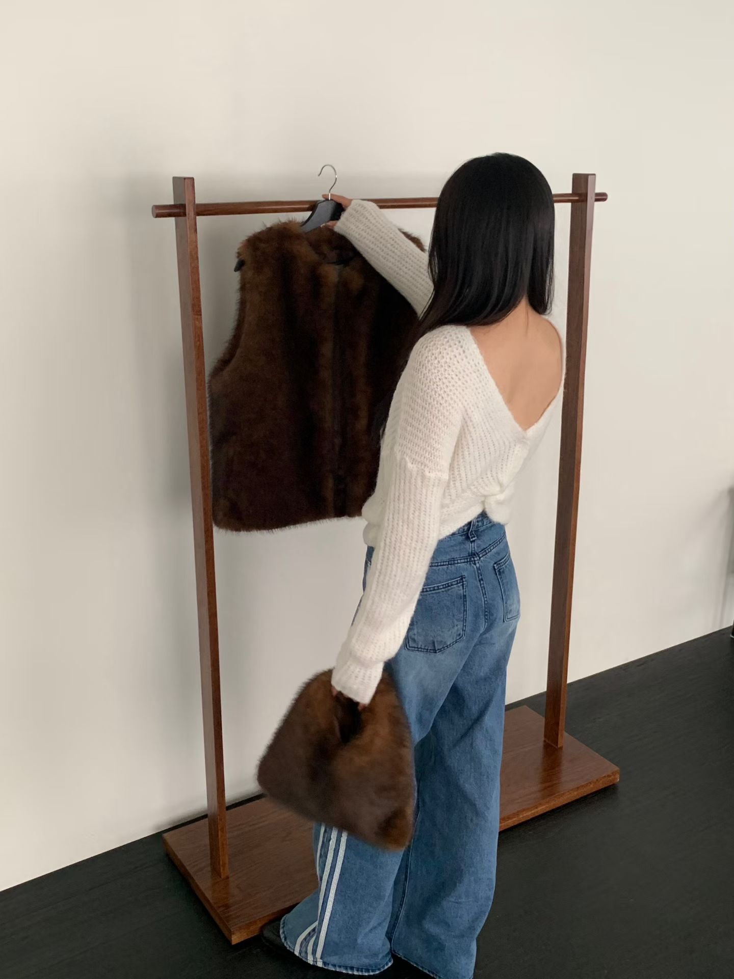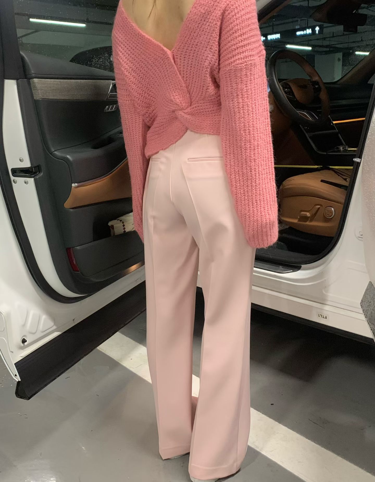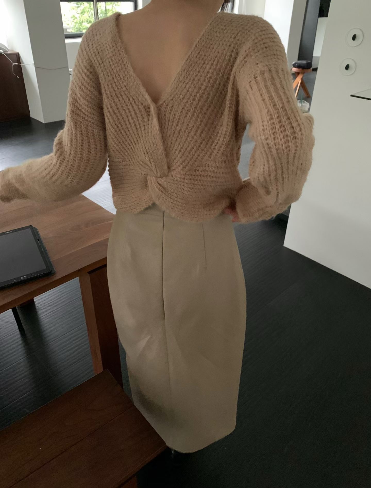 正面是小V領微露鎖骨,反面扭結露背穿起來又是一種氣質性感。