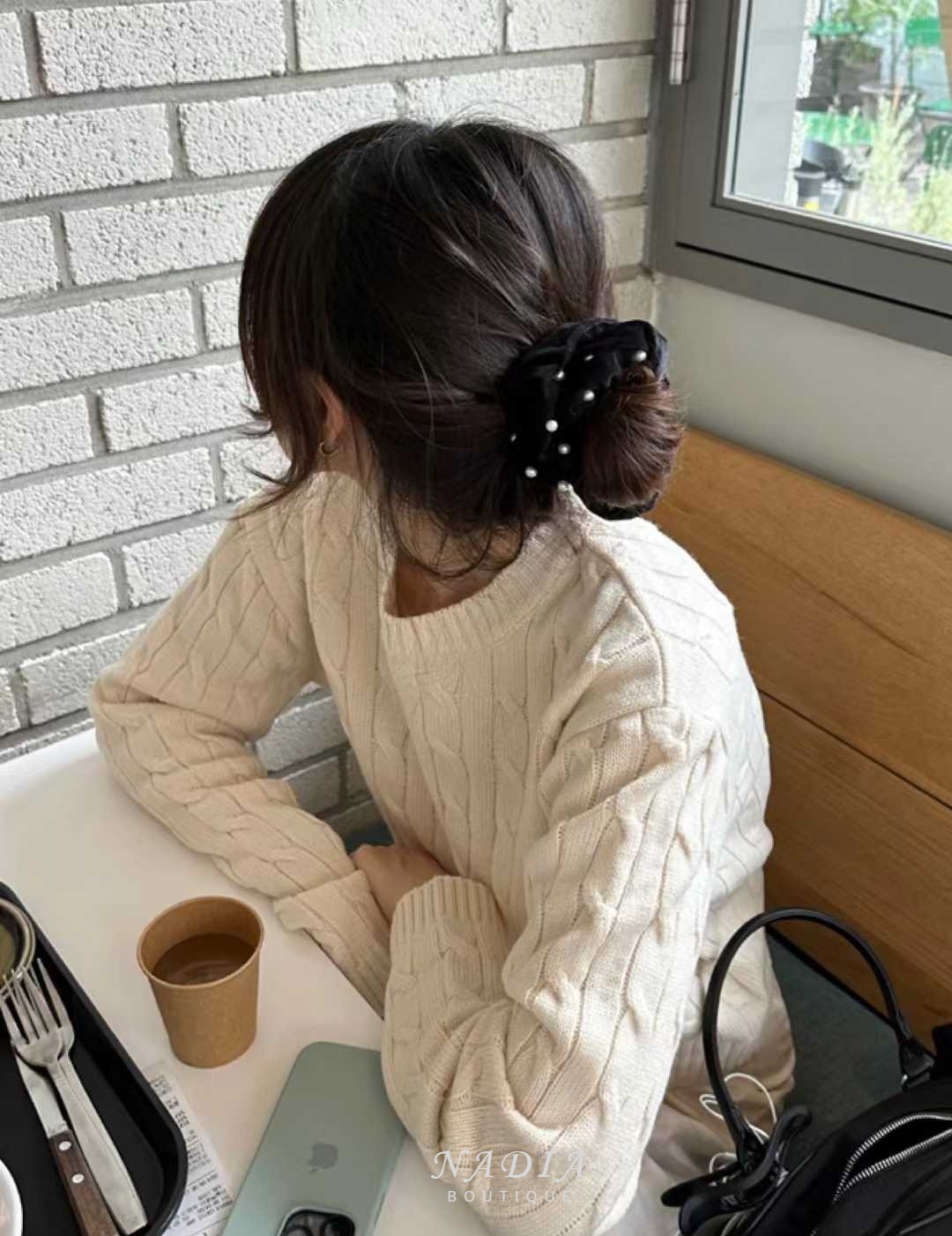 這款珍珠絲絨髮圈真的能讓整體氣質瞬間升級。