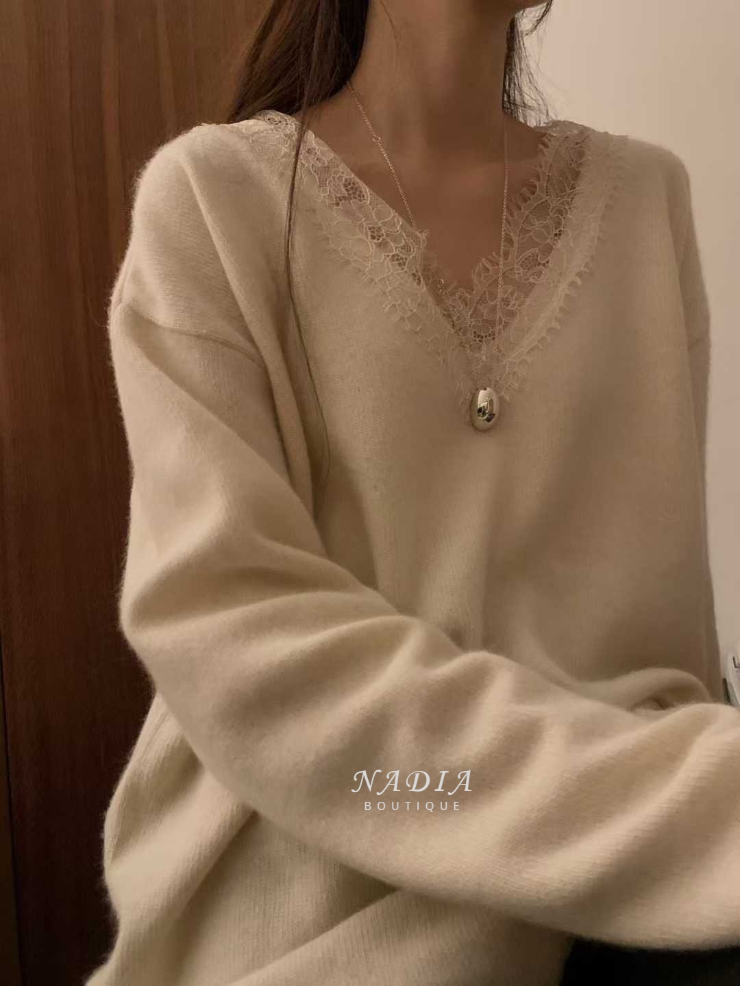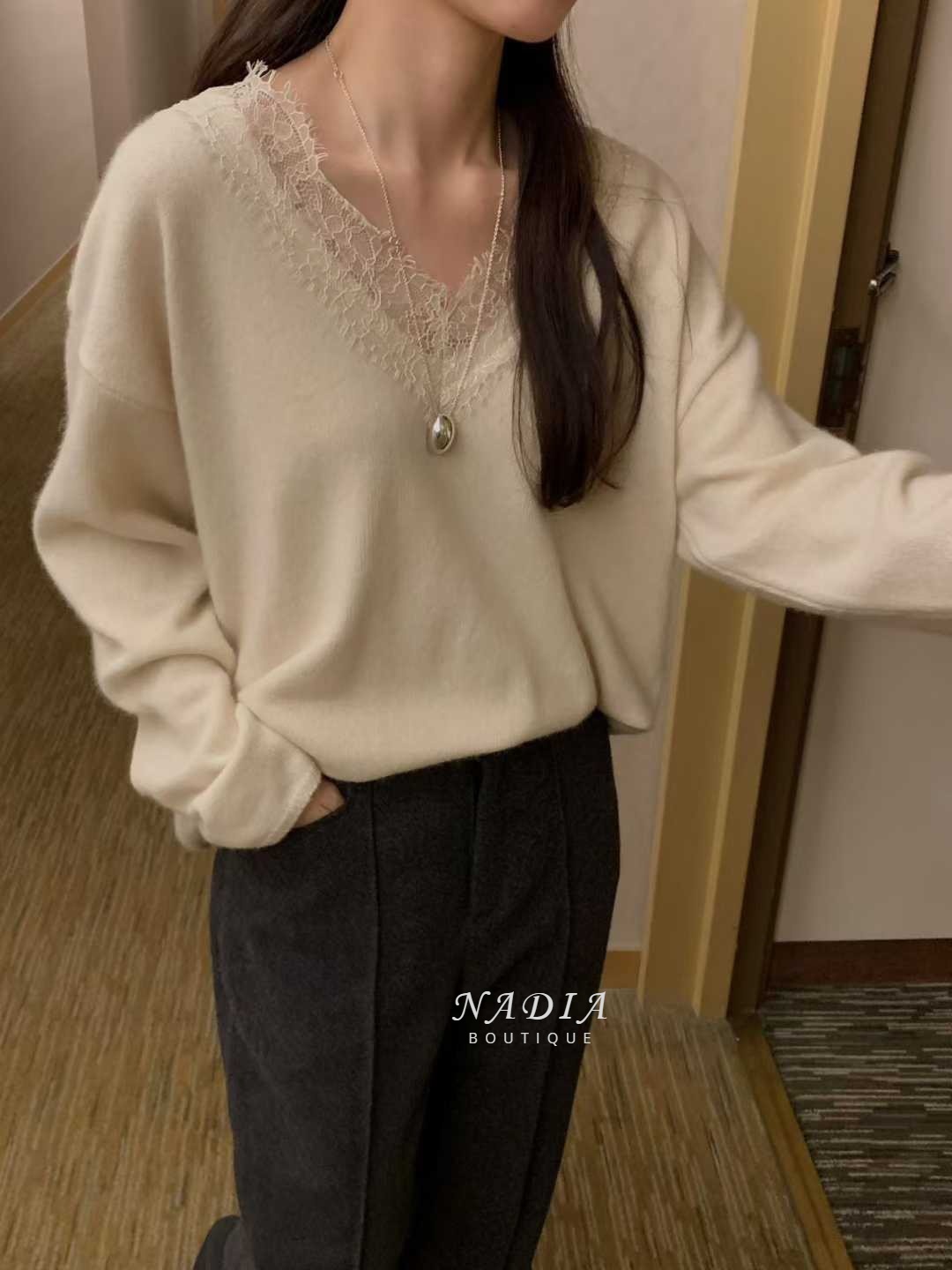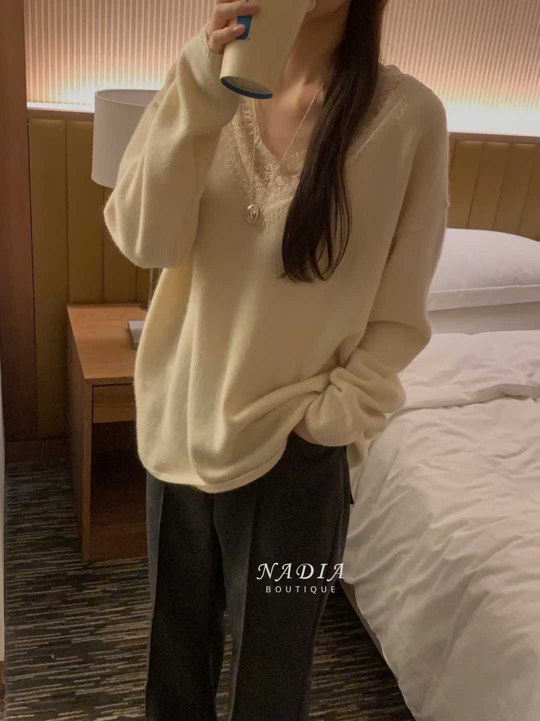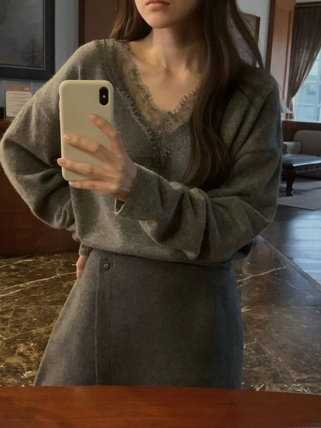 領口那圈細緻的蕾絲,剛剛好露出鎖骨線條,氣質值直接被拉滿。