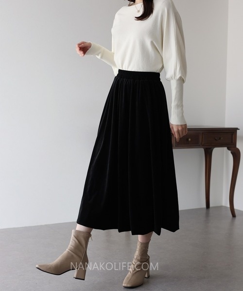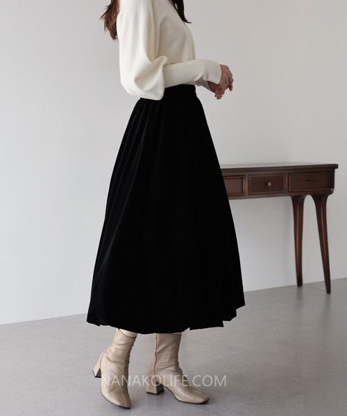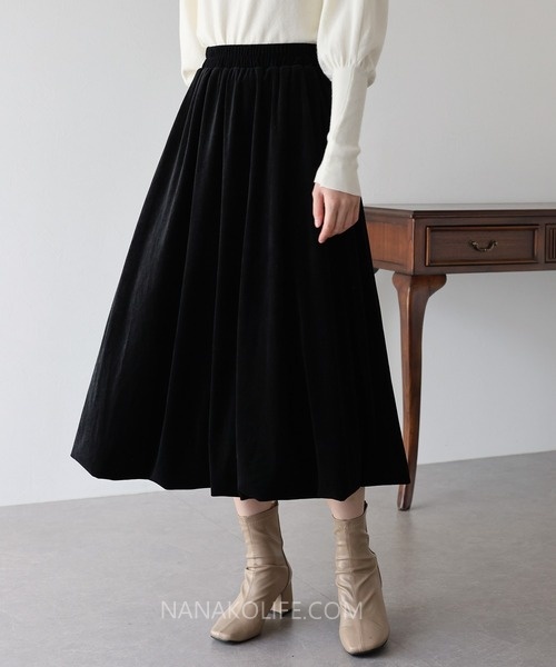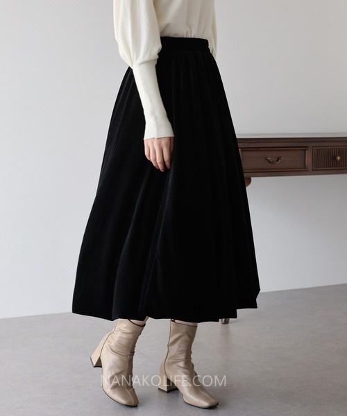 這款 Velvet Flow 高質感天鵝絨A字長裙 是百搭又實穿的冬季必收,