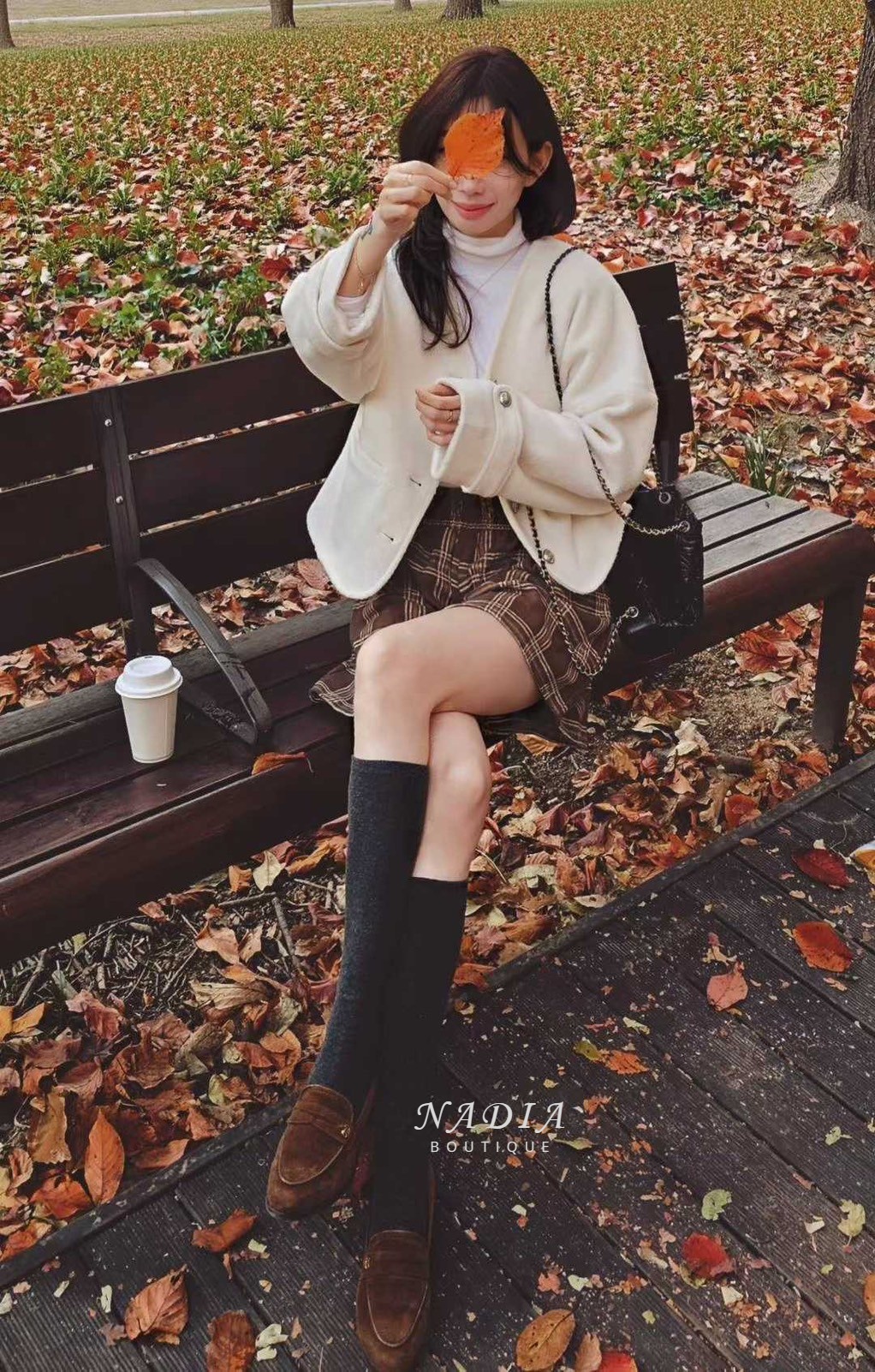 面料含 35% 羊毛,手感扎實、保暖度剛剛好,不會過厚、上身也不會腫。