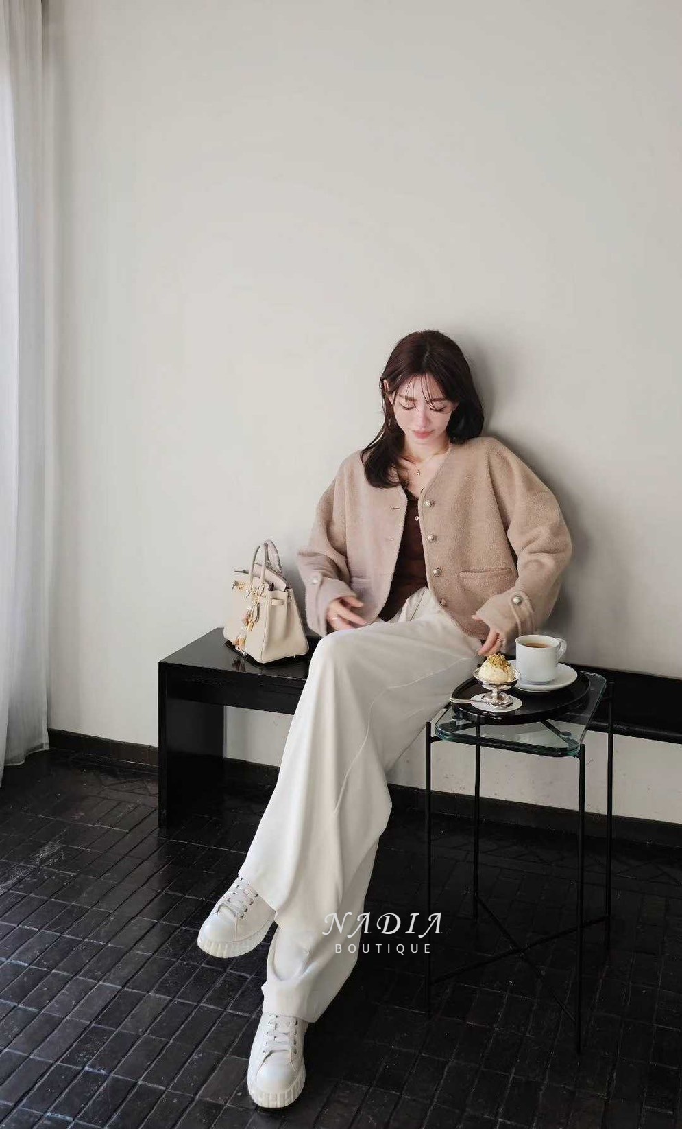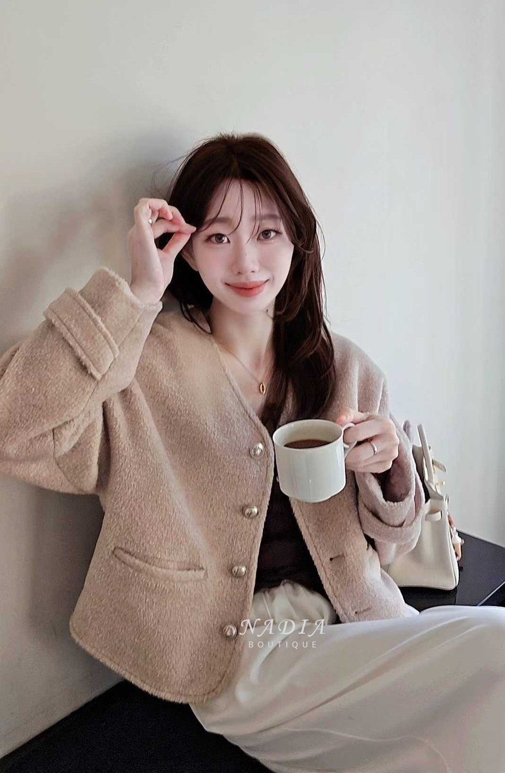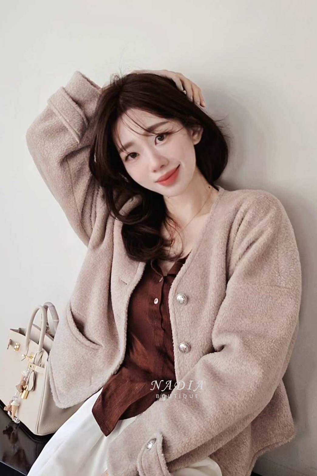 釦子做成 韓系金屬珍珠釦,真的很加分,簡單搭T、針織或連身裙就有氣質。