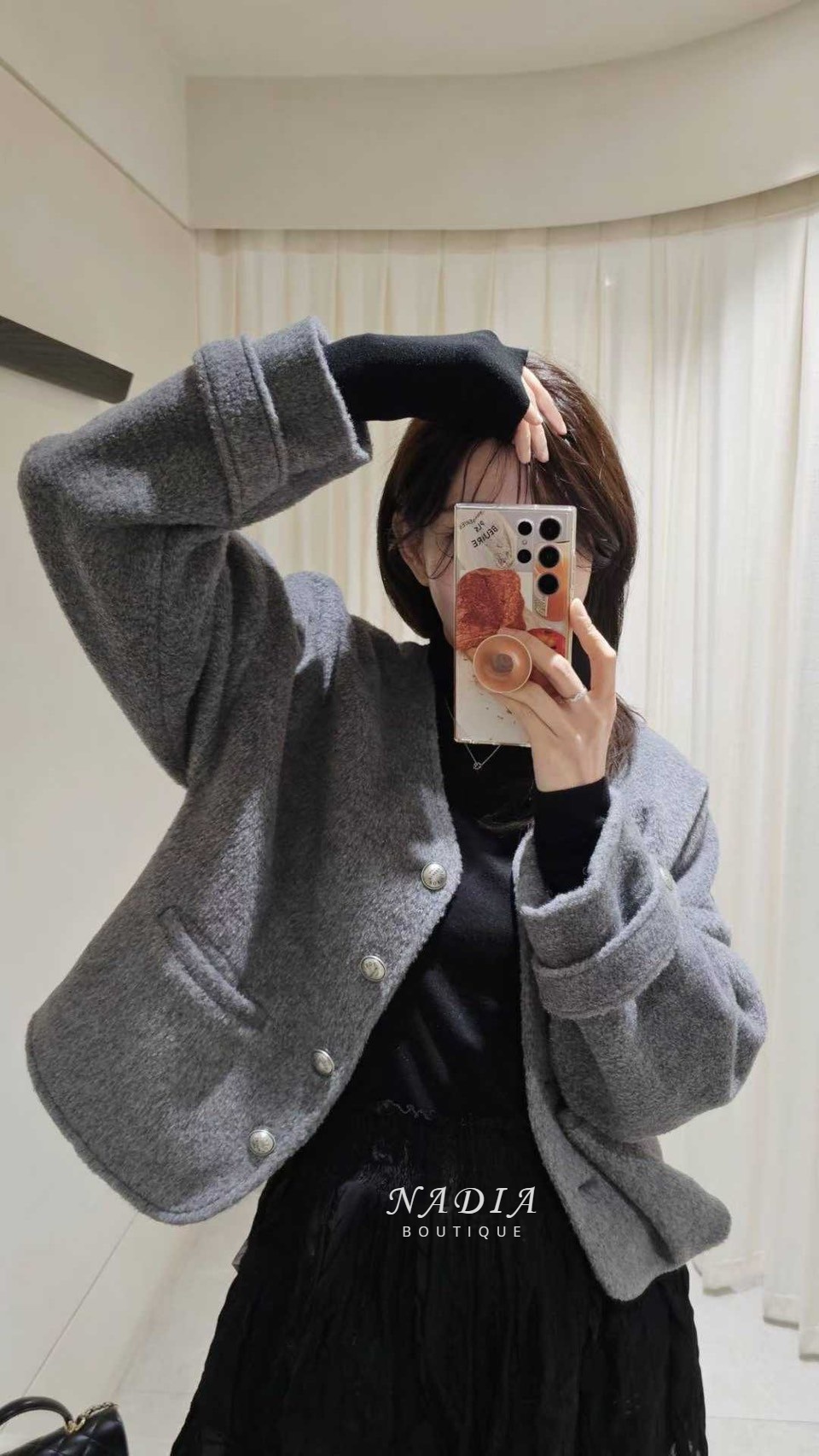 我們這件 Pré-Luxe 羊毛短外套 是我一摸到就決定必須帶回來的那種質感。