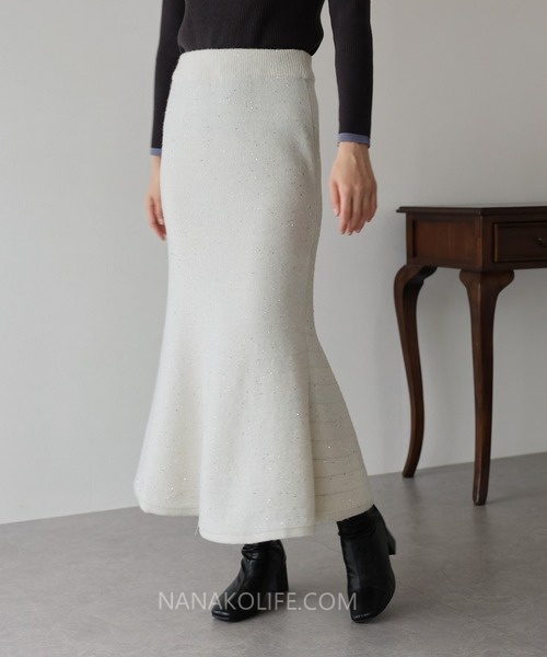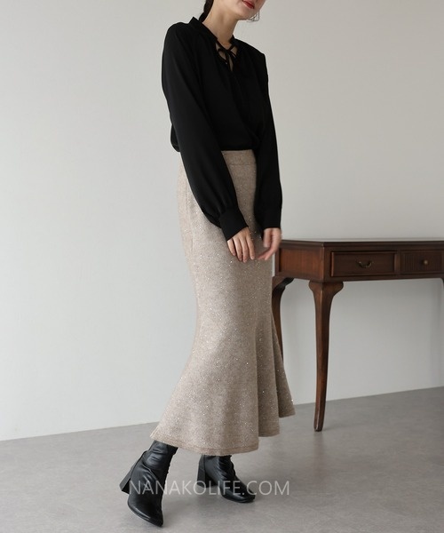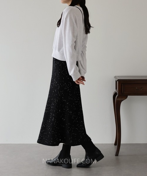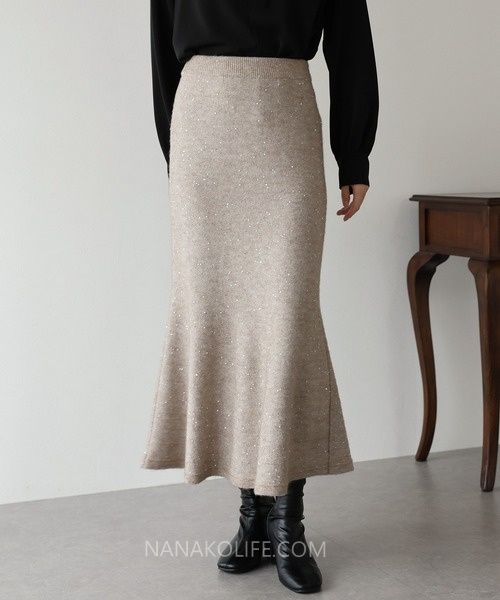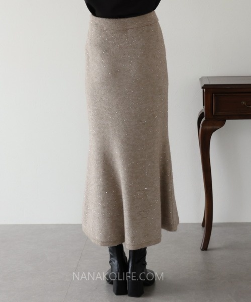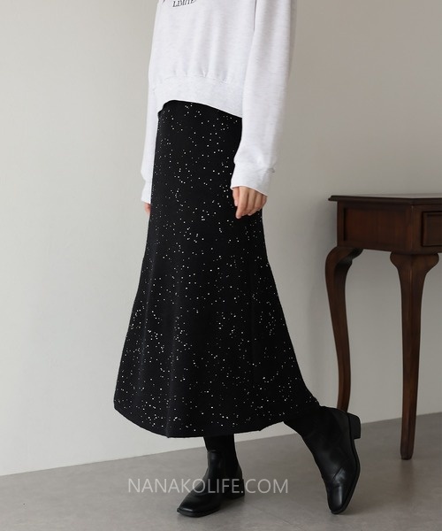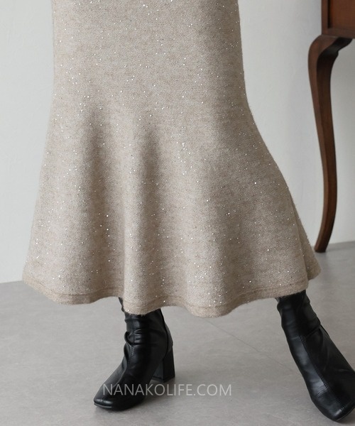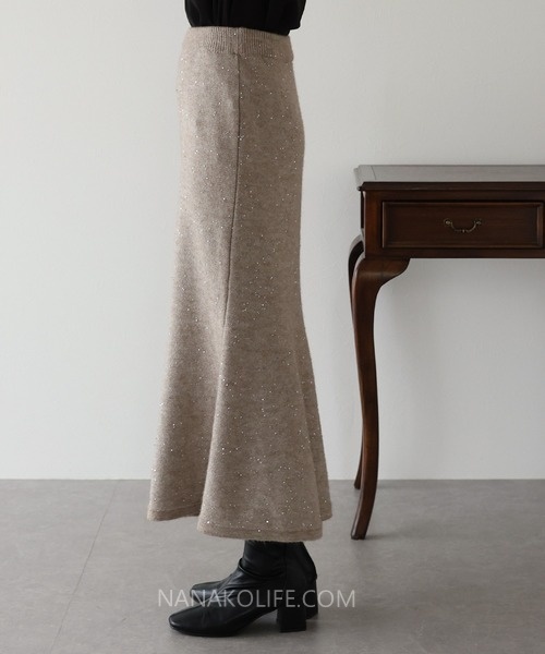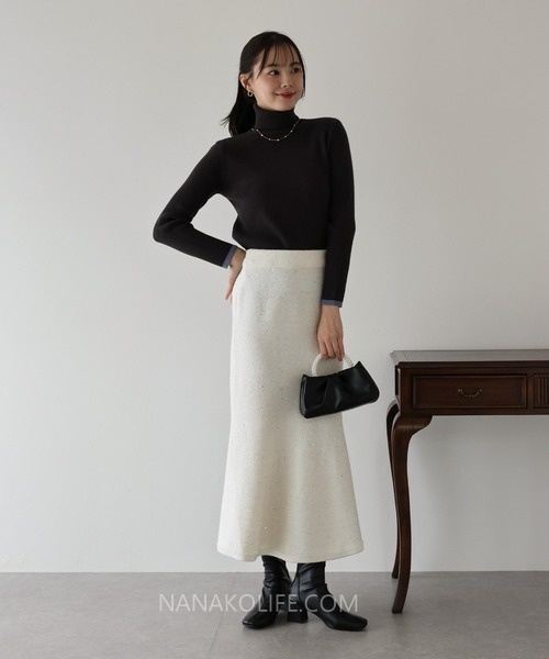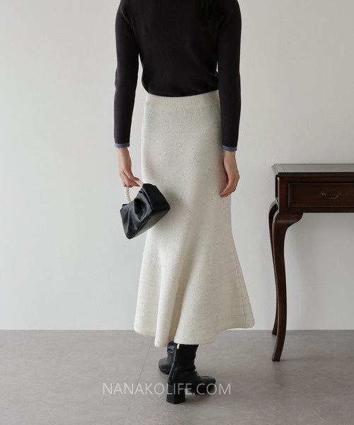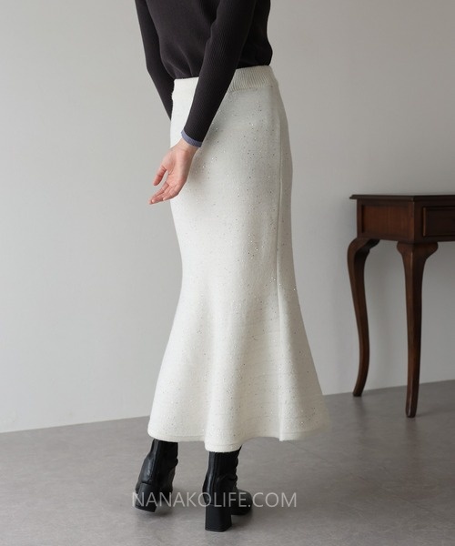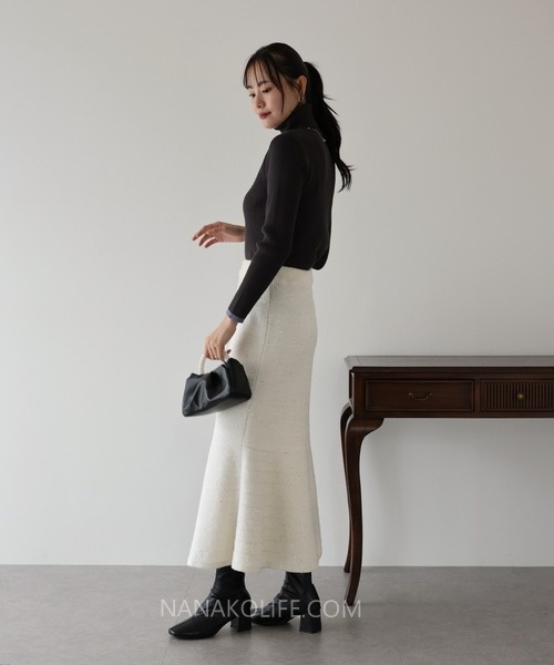 一穿就很顯氣質的 微光亮鑽毛呢長裙,