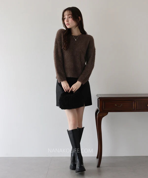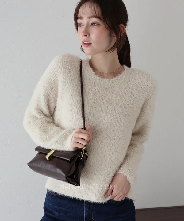毛絨的蓬鬆感讓肩線更柔和、整體比例更纖細。