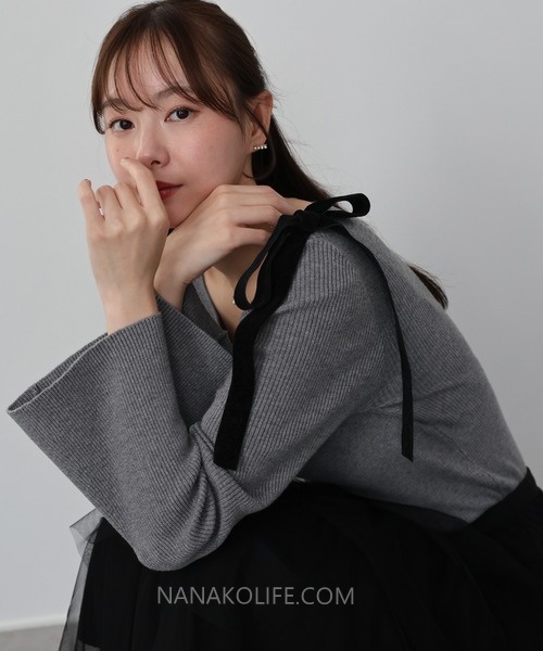 肩帶以 絲絨蝴蝶結 綁帶設計,溫柔又帶點法式浪漫,