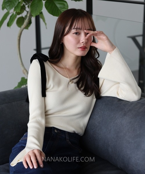 微微的 V 領拉出俐落的臉部線條,讓鎖骨更精緻可愛。