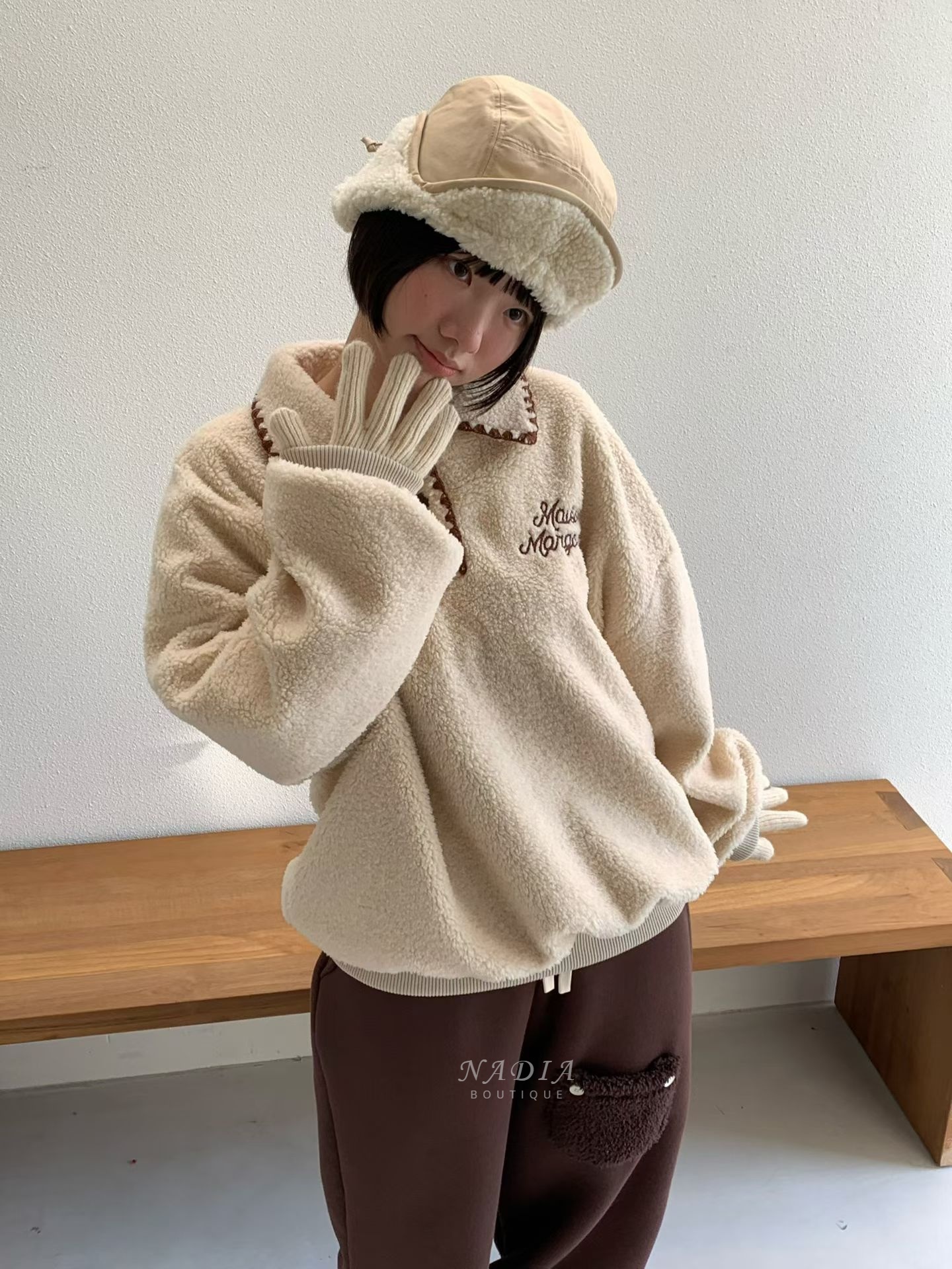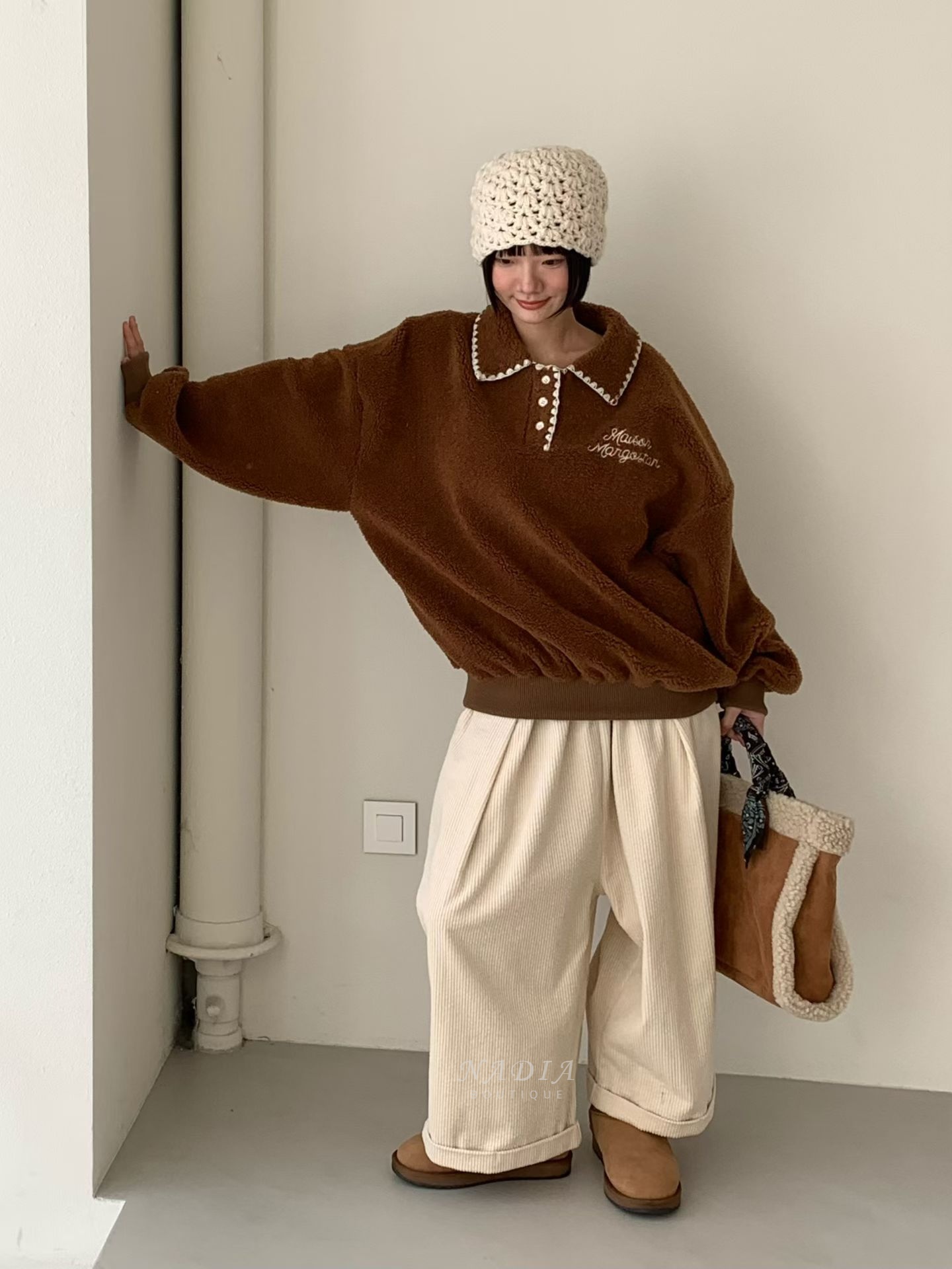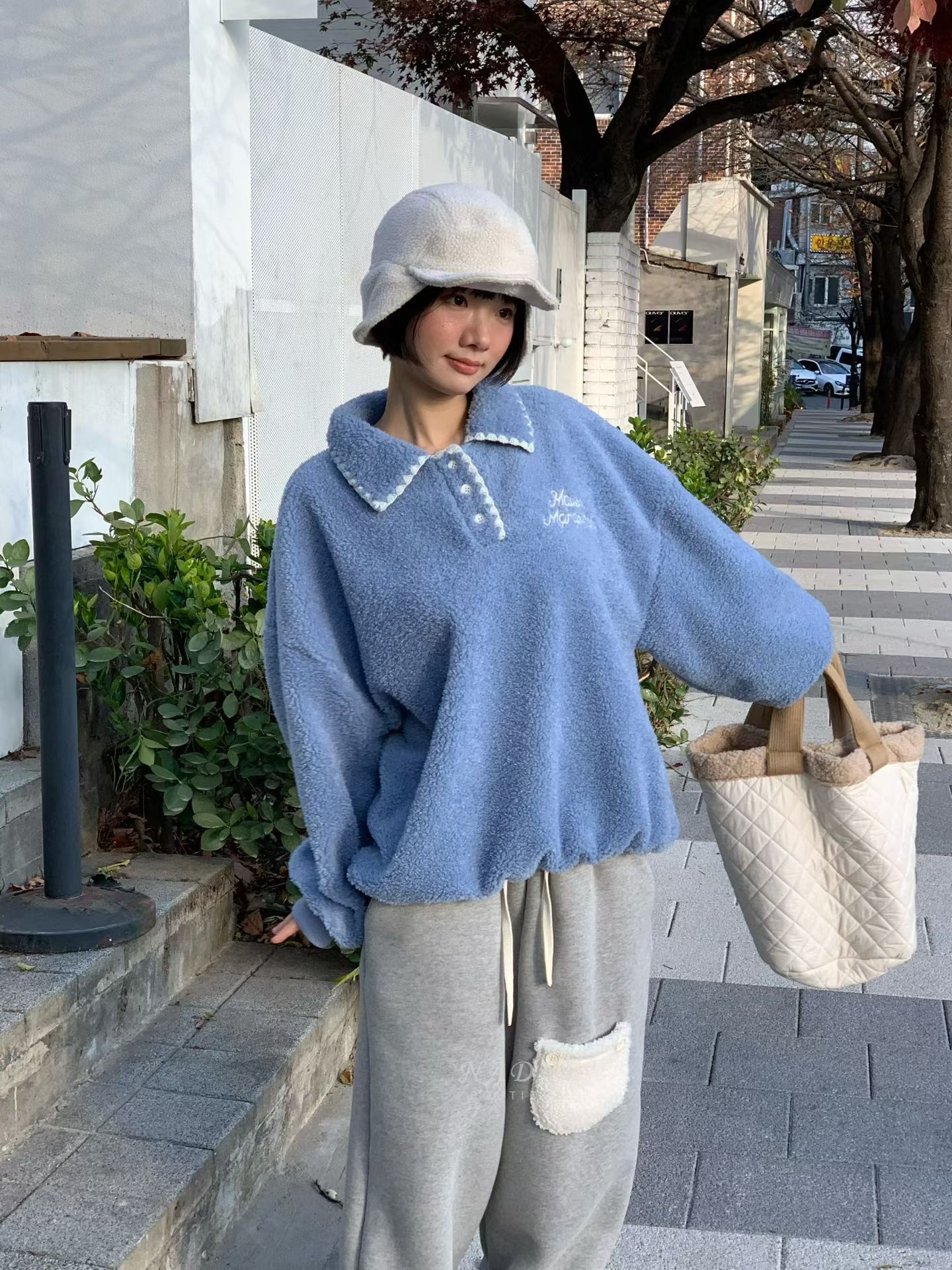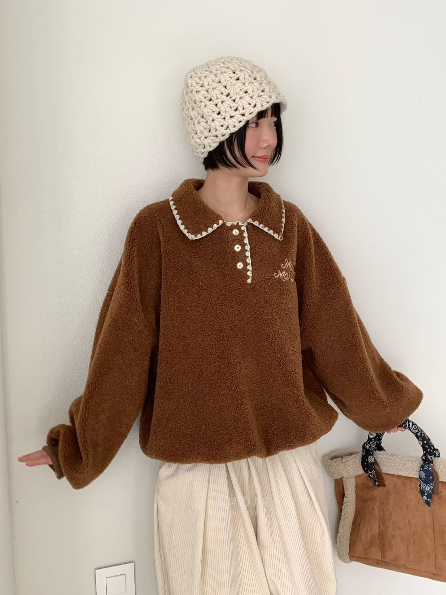 穿就超有「韓系溫柔歐膩感」的羊羔毛上衣 蓬鬆軟糯的毛料不挑身形,質感滾邊的小領口提升整體精緻度。
