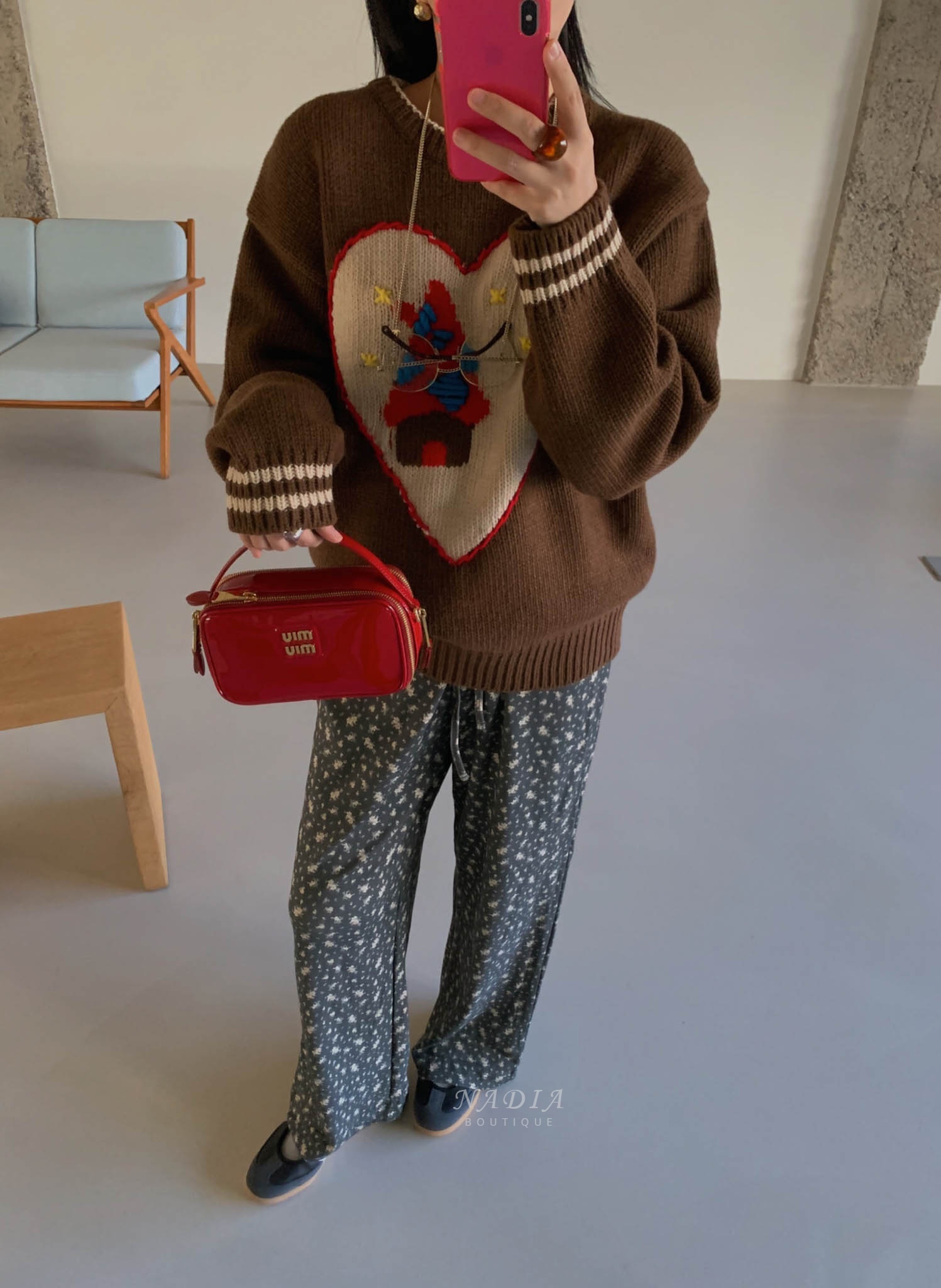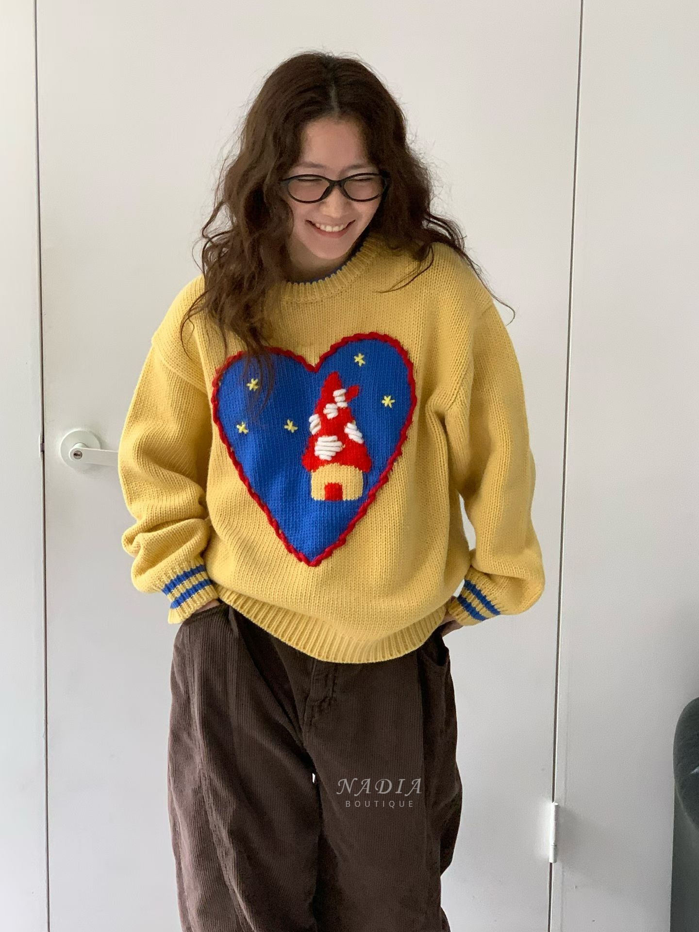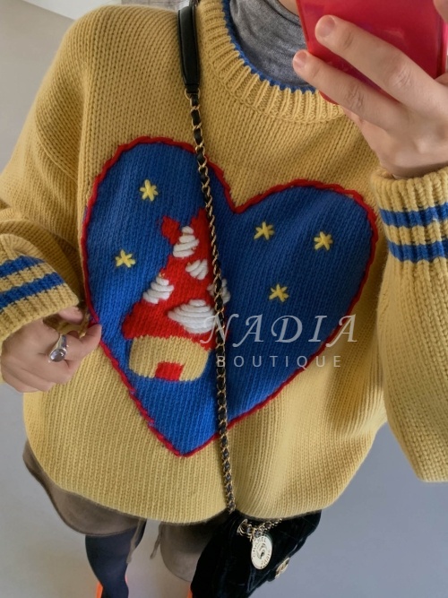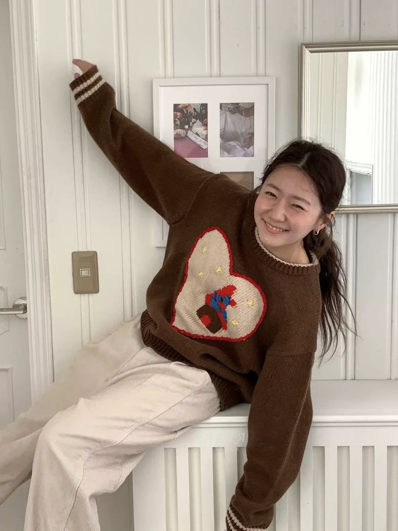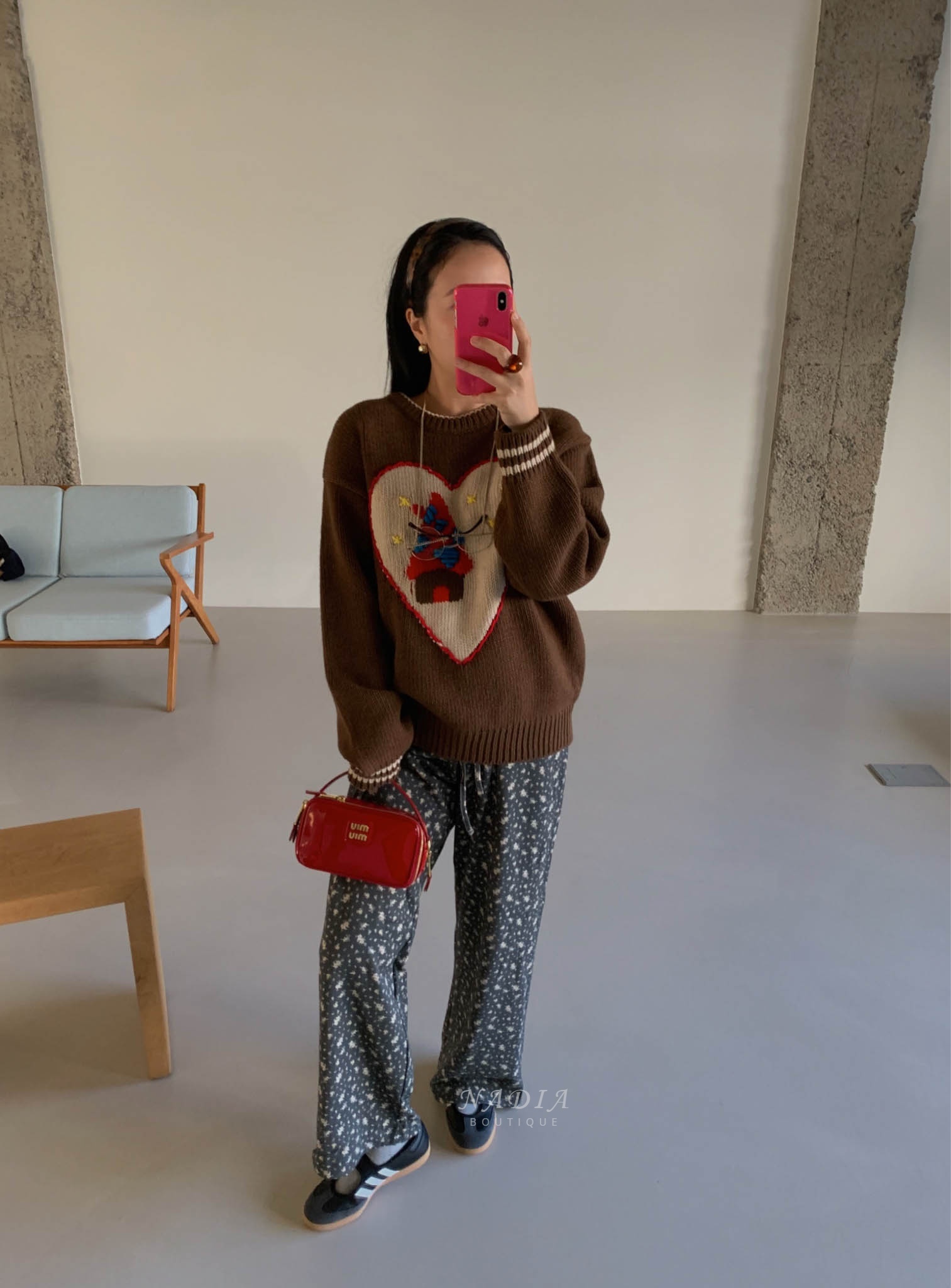 一件讓冬天變得柔軟可愛的毛衣。 胸前的愛心+聖誕小屋,以立體織紋呈現,細節滿滿又不幼稚。 版型偏寬鬆,單穿就很有存在感,也能搭落地褲、牛仔褲走氣質休閒風。 冬日節慶想拍照、約會、聚餐,這件穿上就是亮點。