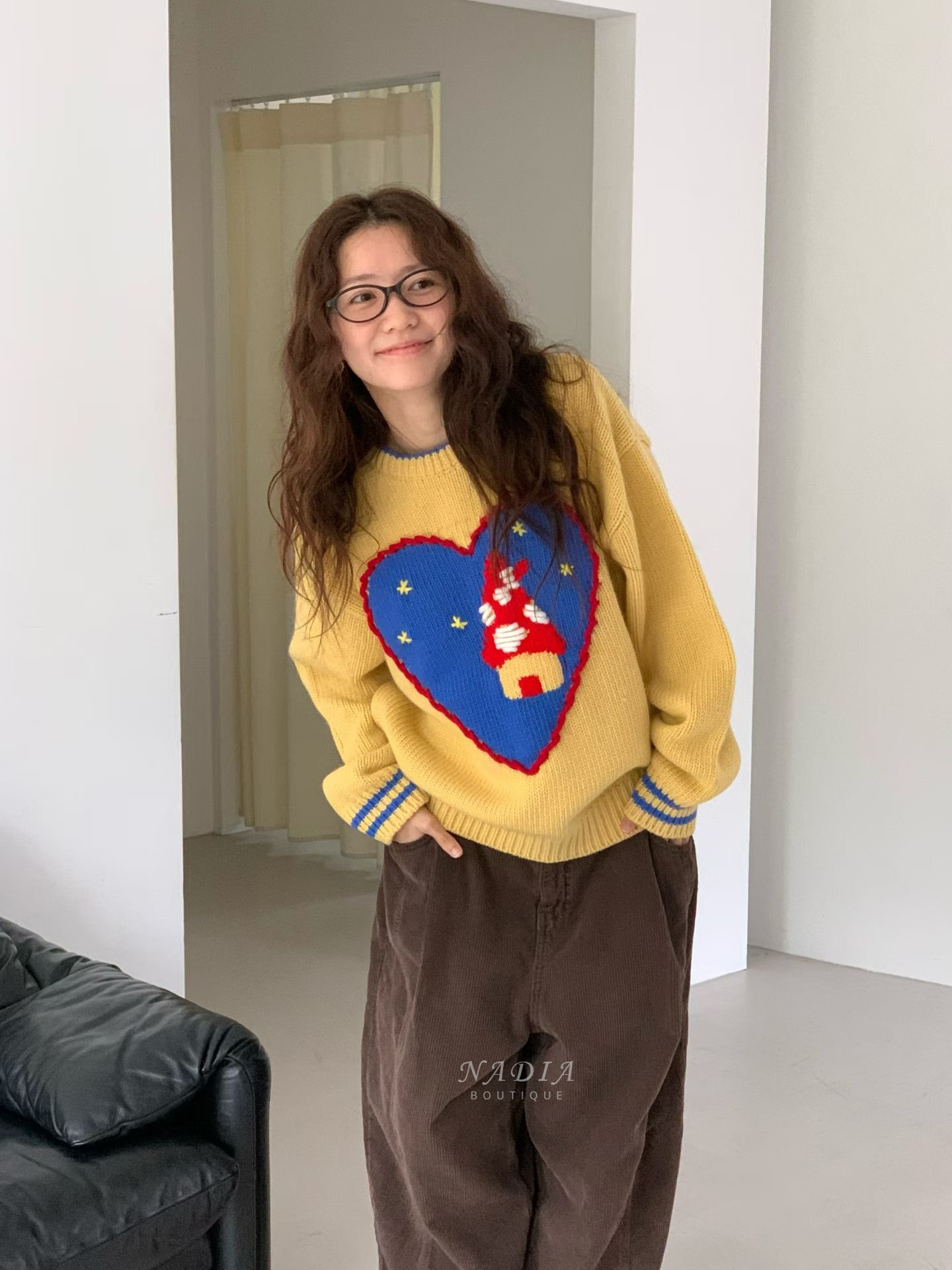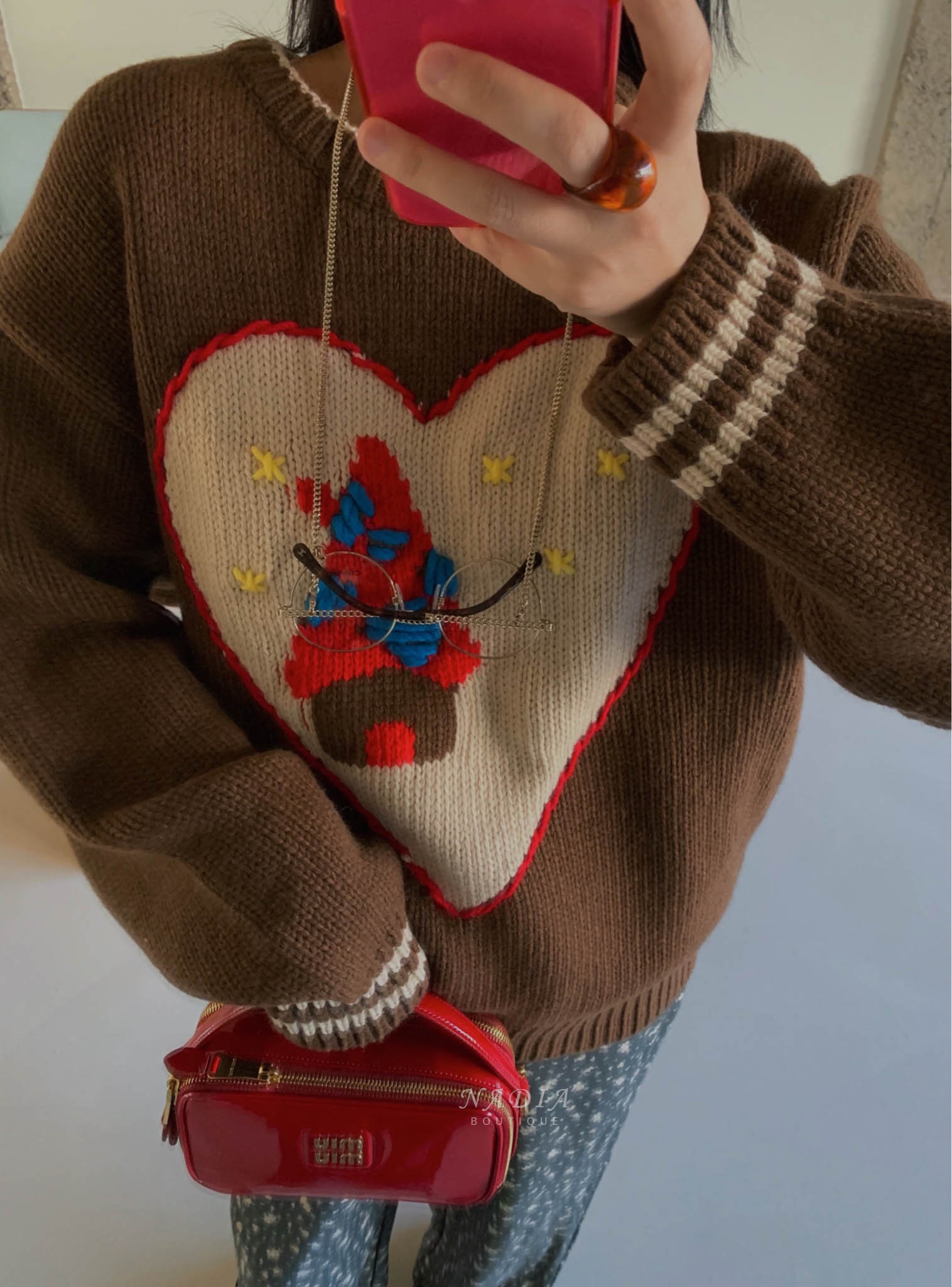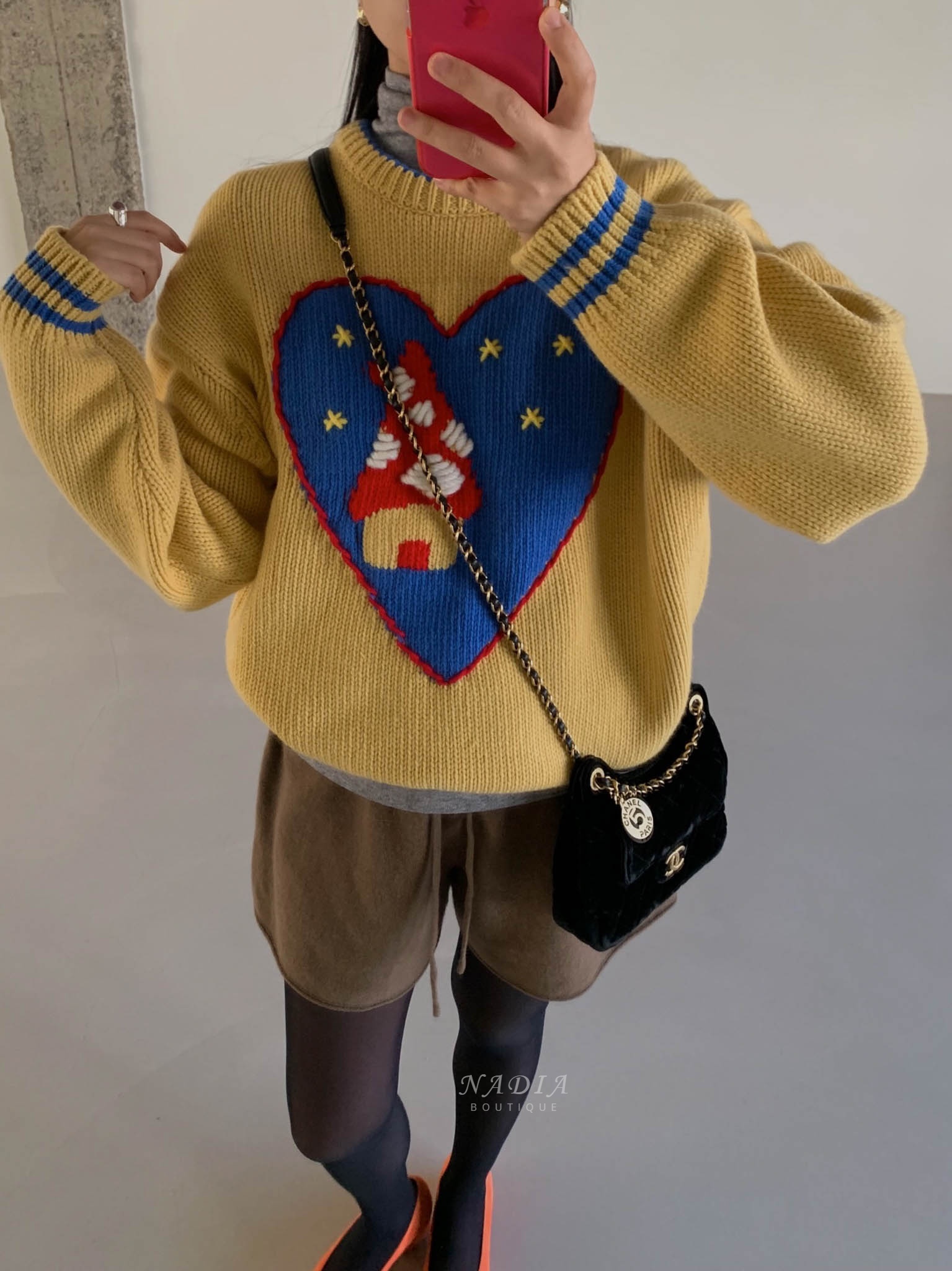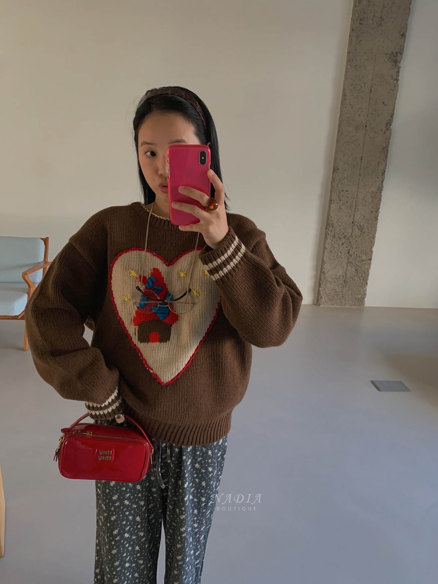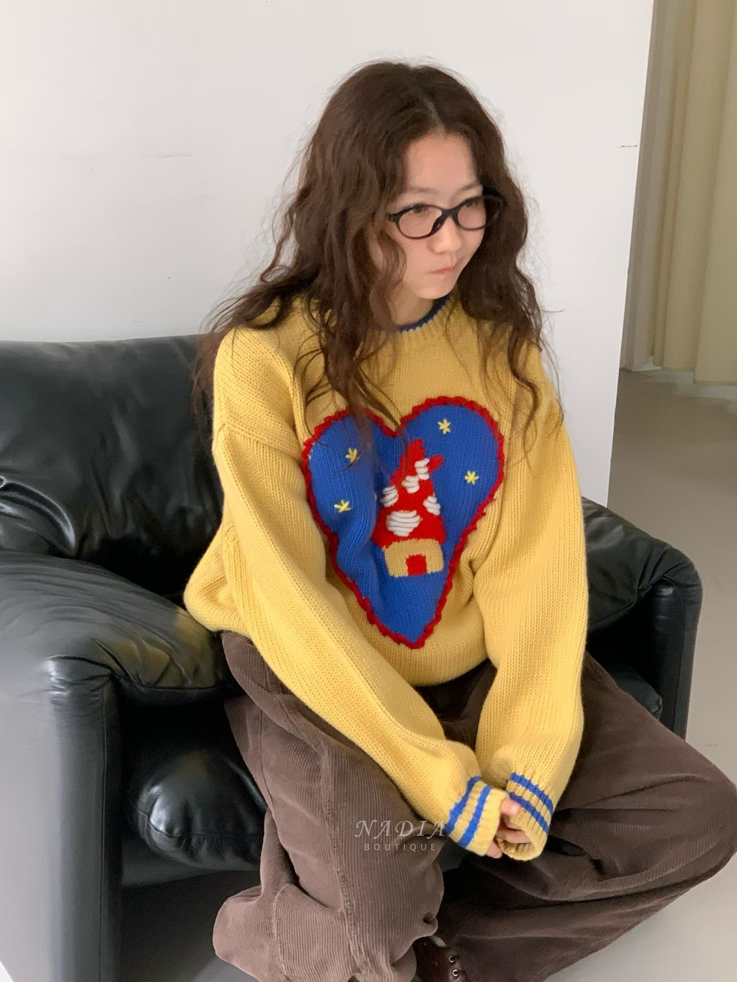 一件讓冬天變得柔軟可愛的毛衣。 胸前的愛心+聖誕小屋,以立體織紋呈現,細節滿滿又不幼稚。 版型偏寬鬆,單穿就很有存在感,也能搭落地褲、牛仔褲走氣質休閒風。 冬日節慶想拍照、約會、聚餐,這件穿上就是亮點。