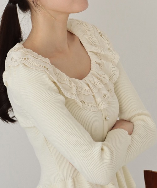 最迷人的地方,就是那圈法式蕾絲荷葉領 —— 一穿直接氣質拉滿。