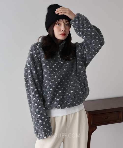 遠看是乾乾淨淨的絨毛上衣,近看才發現是小小愛心點點,低調又可愛到不行。