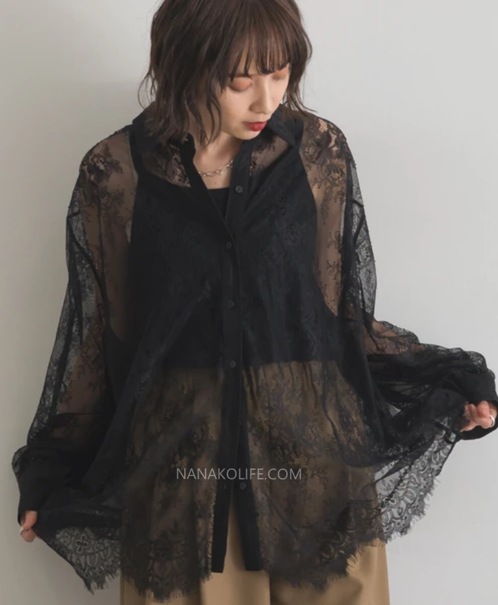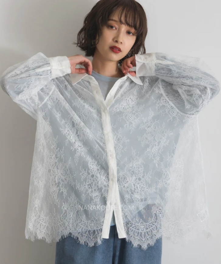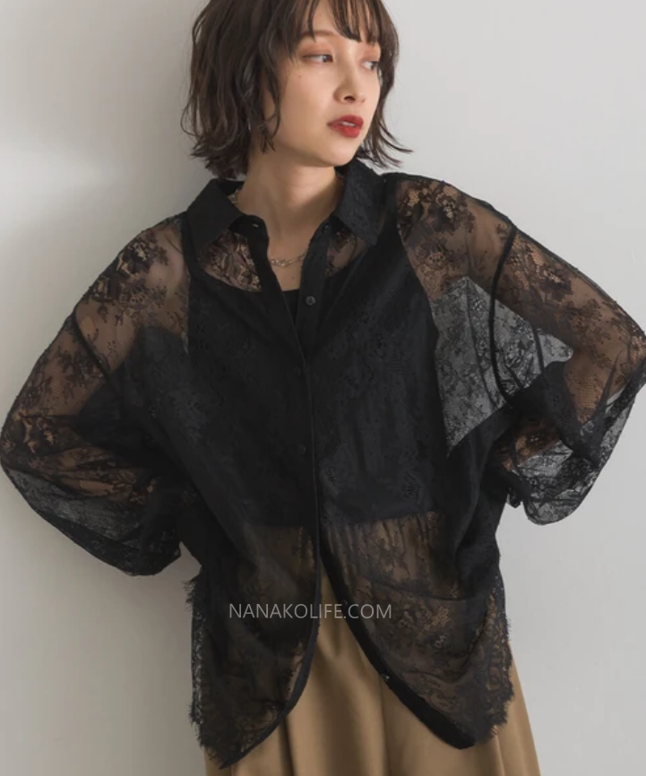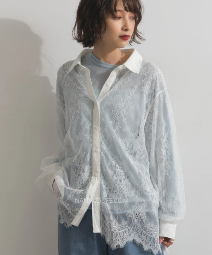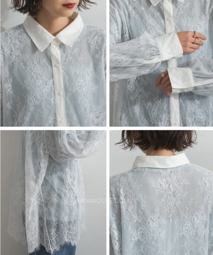 \ 一穿就很有女人味♡卻一點都不刻意的透膚蕾絲上衣 /