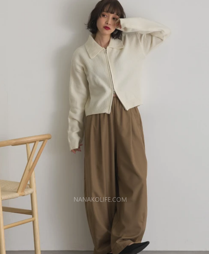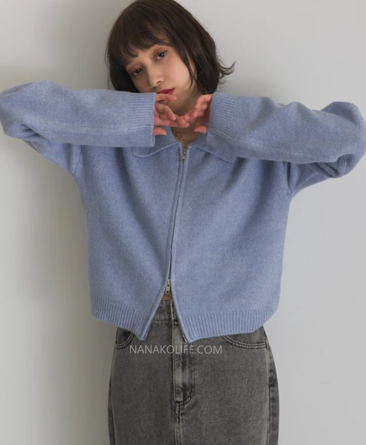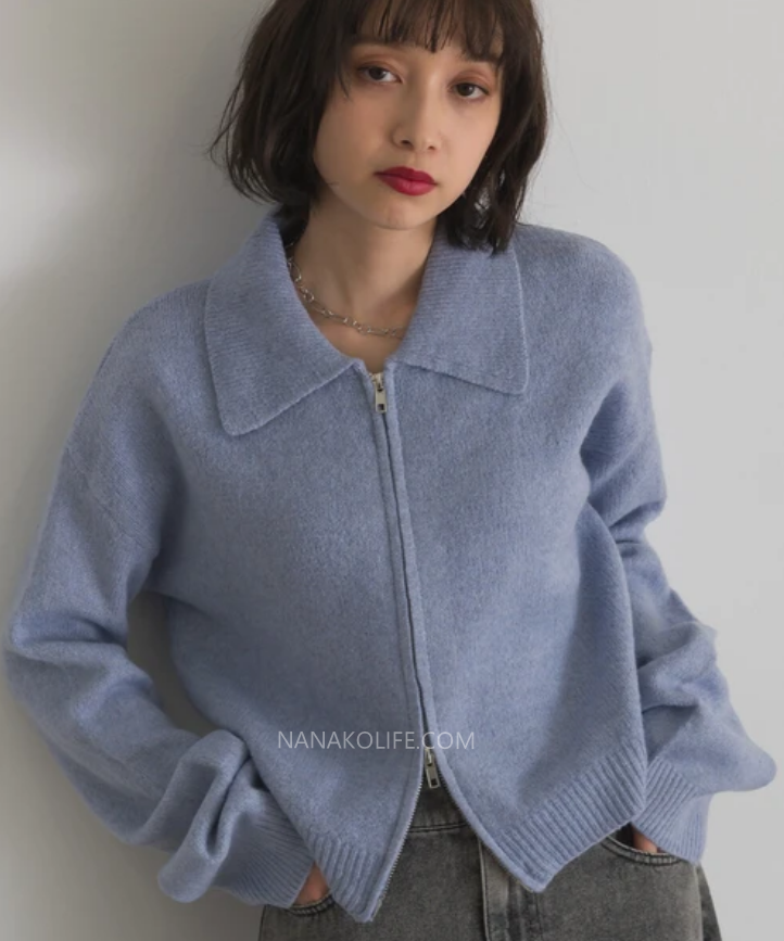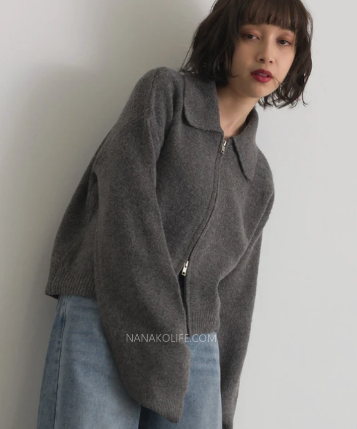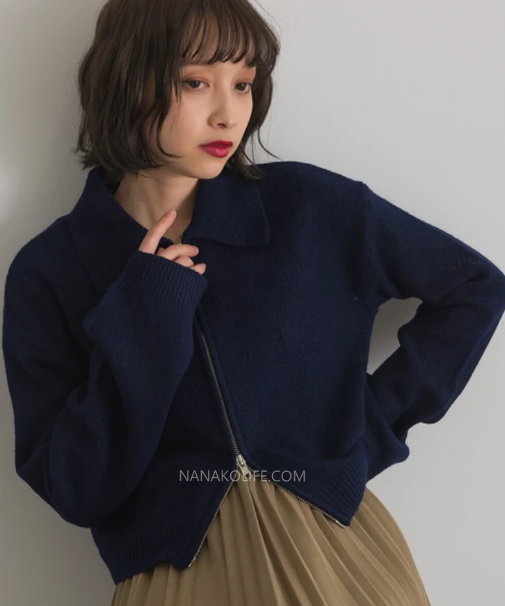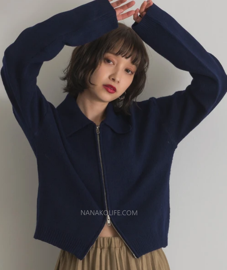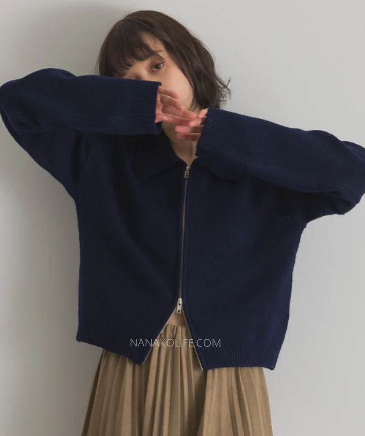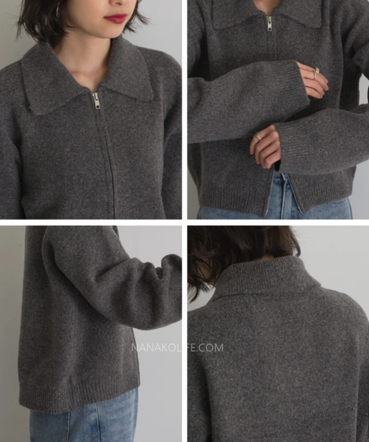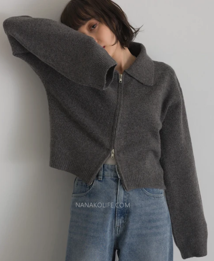\ 一穿就很有氣質♡比例剛剛好的翻領拉鍊針織上衣 /