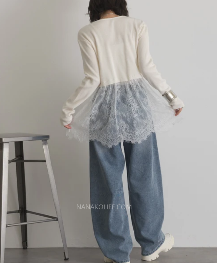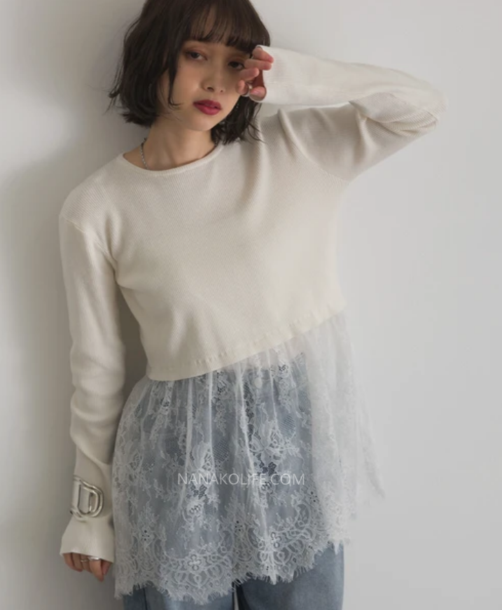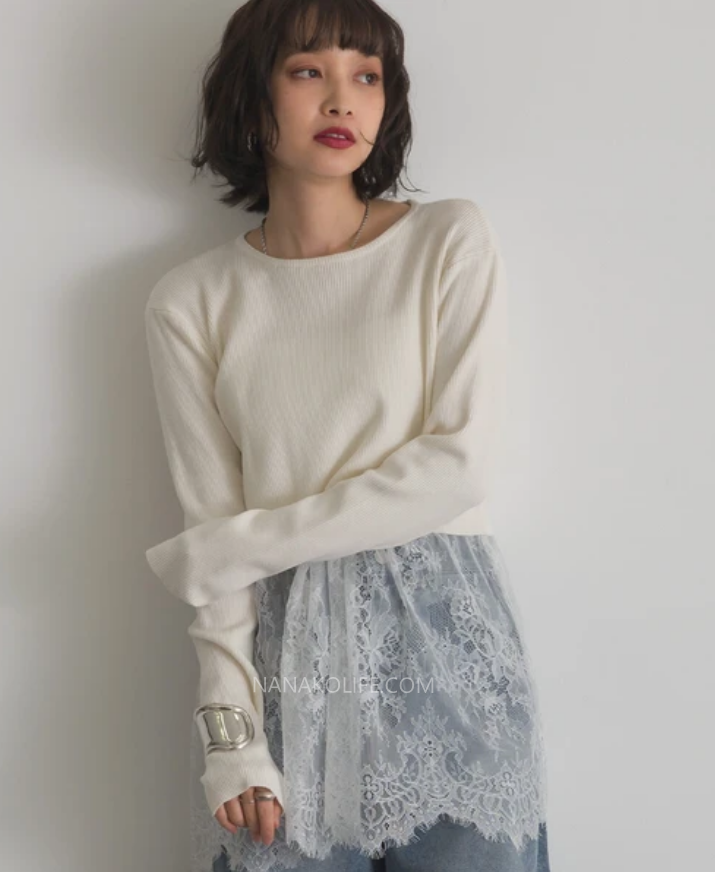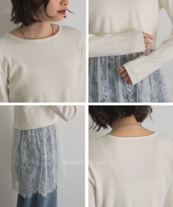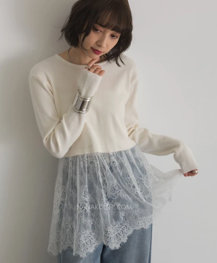 \ 一穿就很溫柔♡讓日常穿搭多一點層次的蕾絲拼接上衣 /