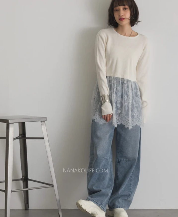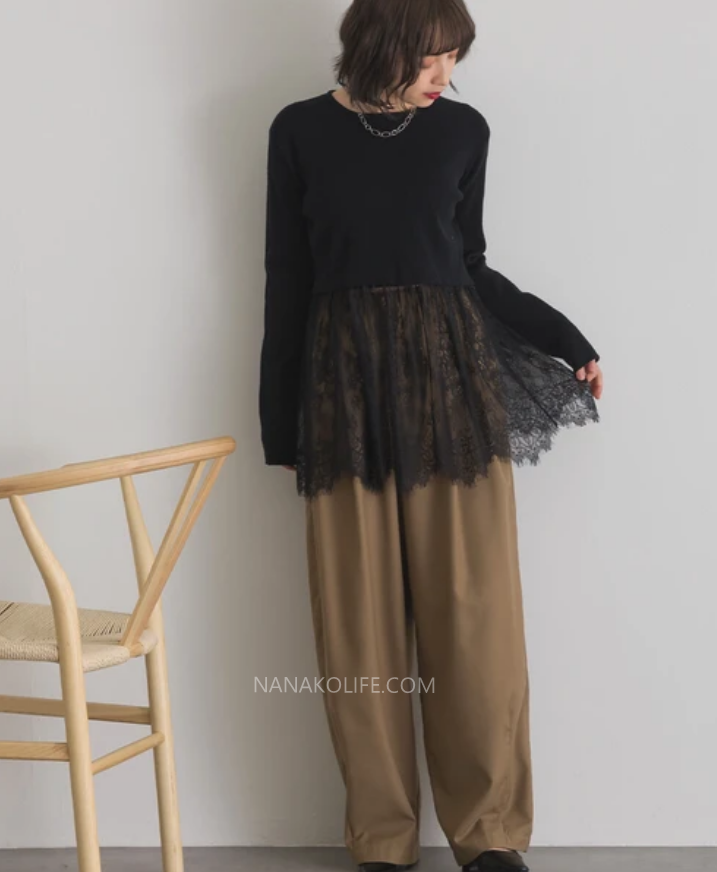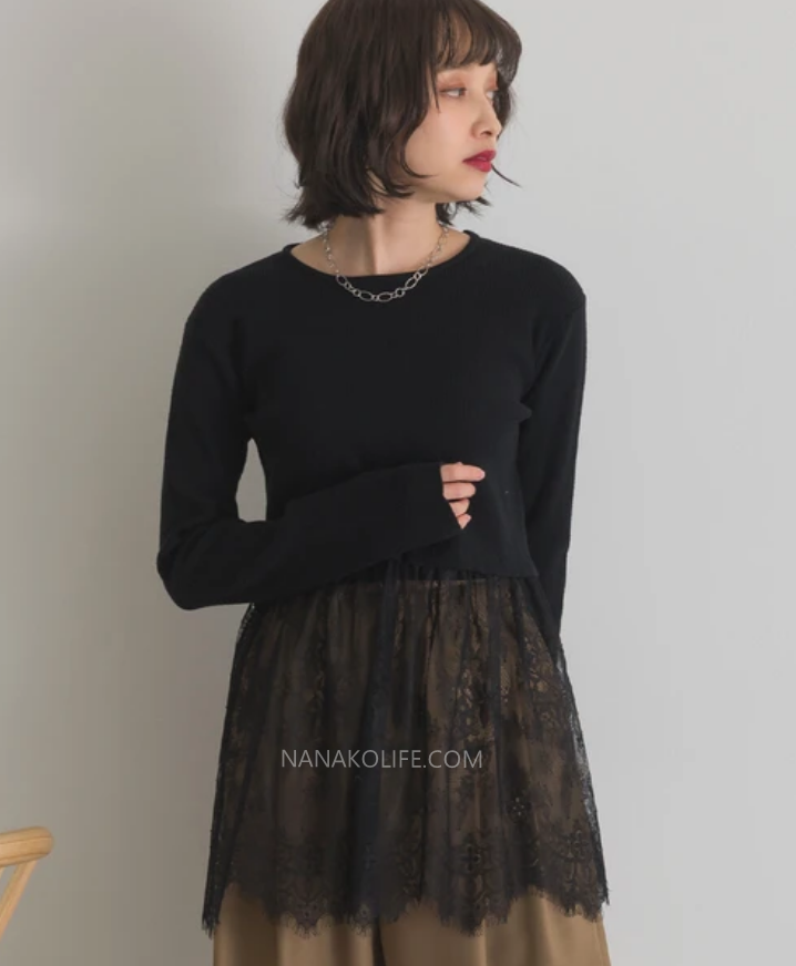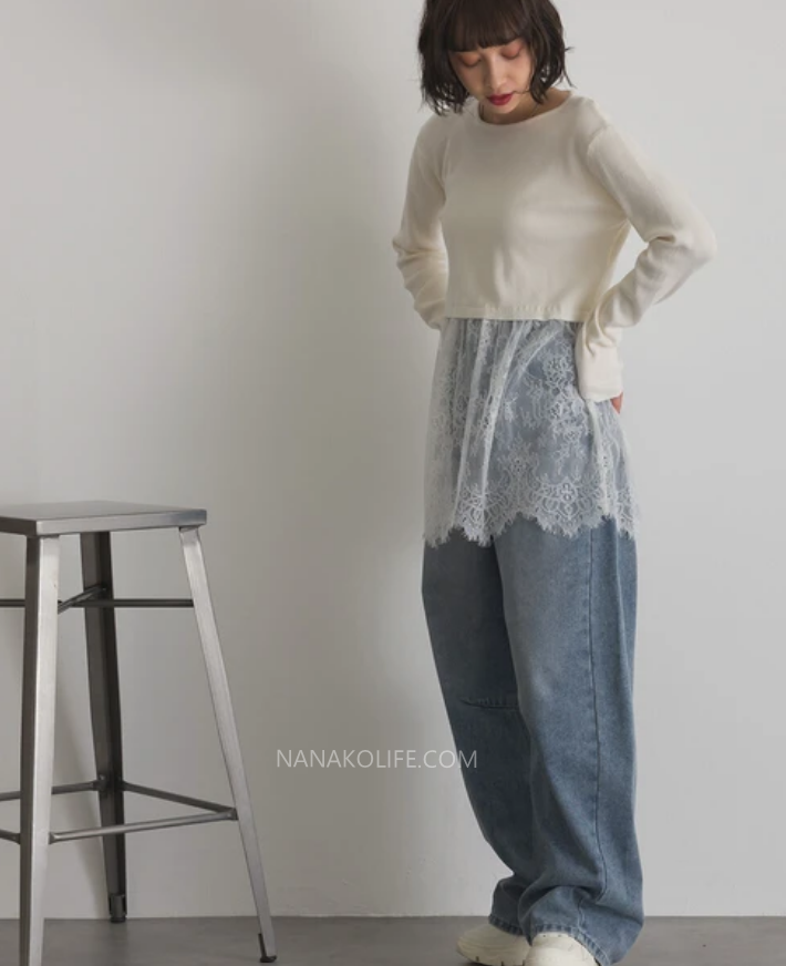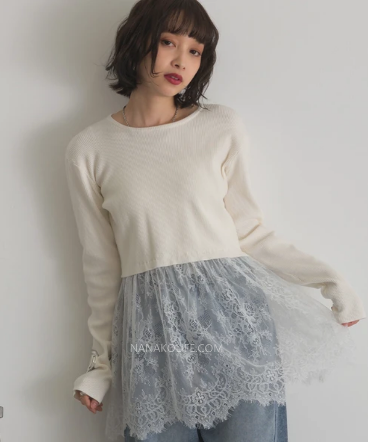 \ 一穿就很溫柔♡讓日常穿搭多一點層次的蕾絲拼接上衣 /