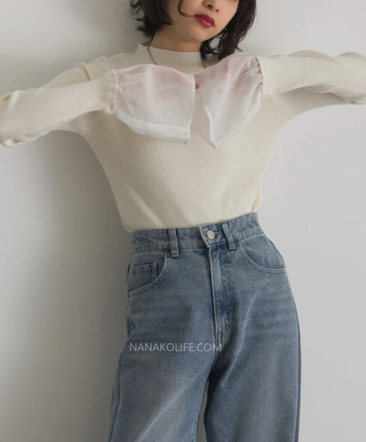\ 一穿就很有女人味♡細節讓人一眼記住的拼接針織上衣 /